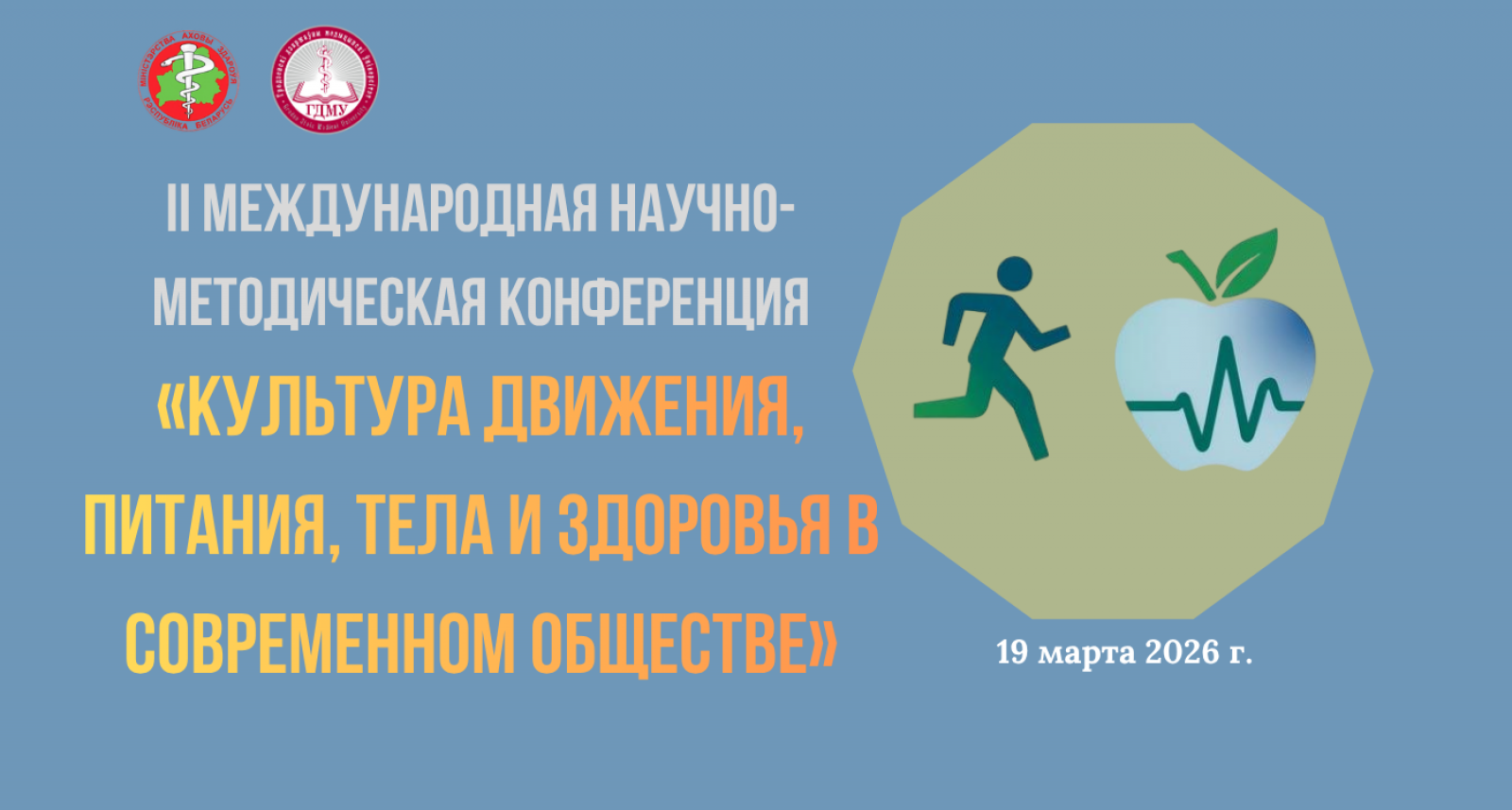Приглашаем Вас принять участие во II международной научно-методической конференции Гродненского государственного медицинского университета «Культура движения, питания, тела и здоровья в современном обществе», которая состоится 19 марта 2026 года.
