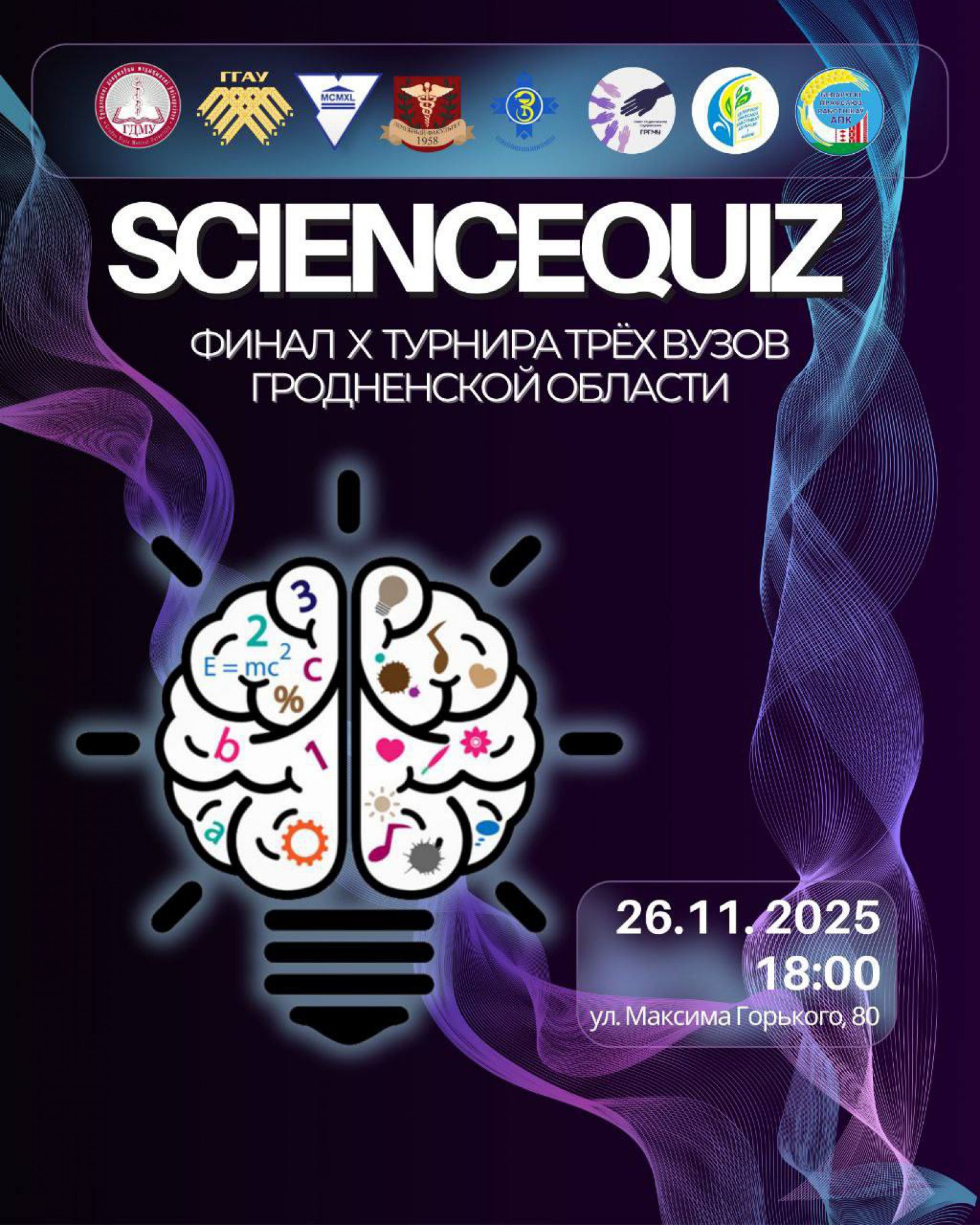 Финалисты отборочных этапов среди вузов города Гродно сразятся в битве эрудитов «ScienceQuiz». Именно здесь определится сильнейшая студенческая команда, которая заберёт главный приз!