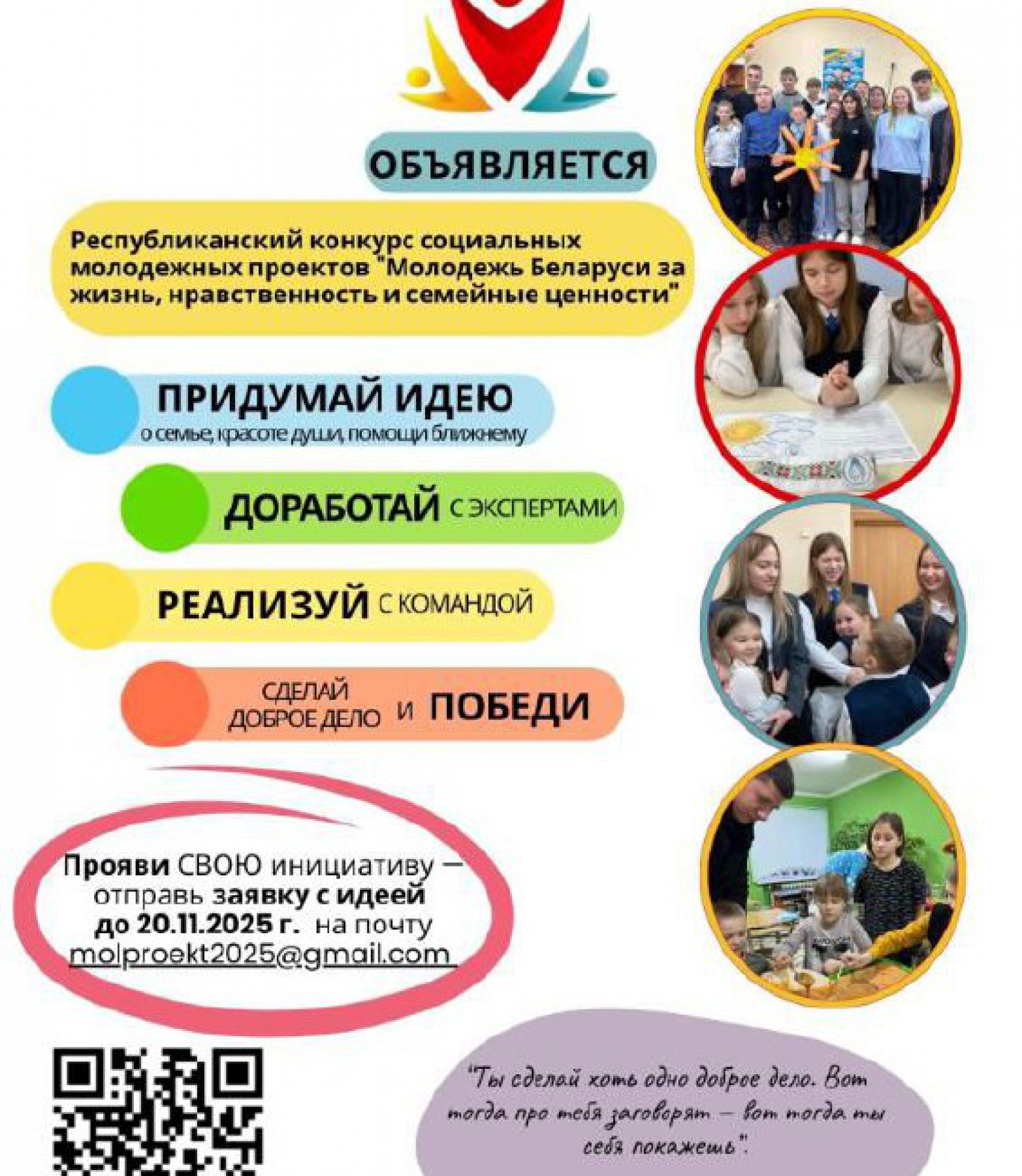 Приглашаем участвовать в республиканском конкурсе социальных молодежных проектов «Молодежь Беларуси за жизнь, нравственность и семейные ценности»!