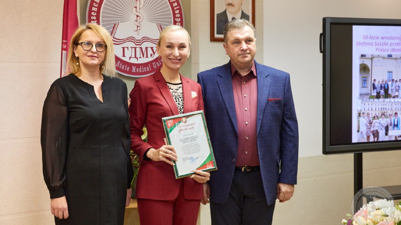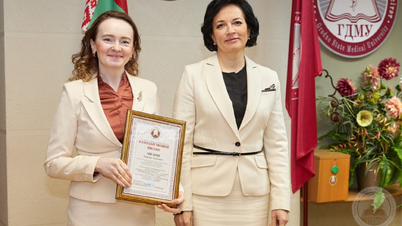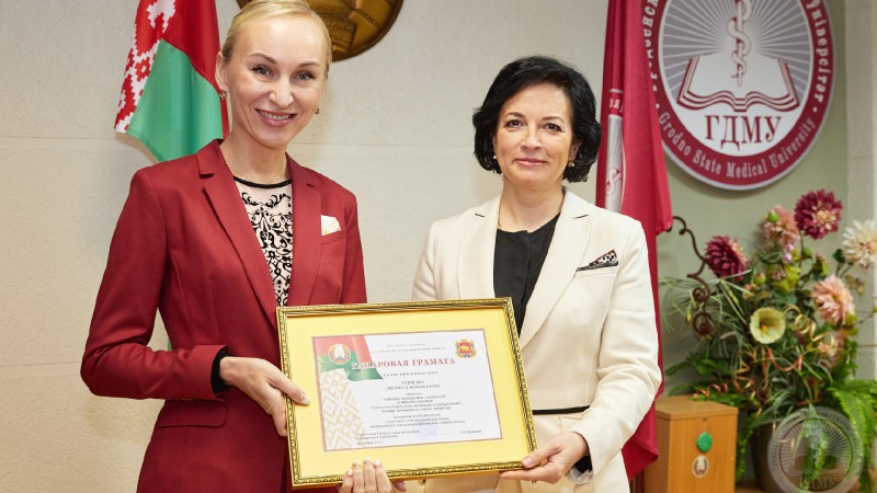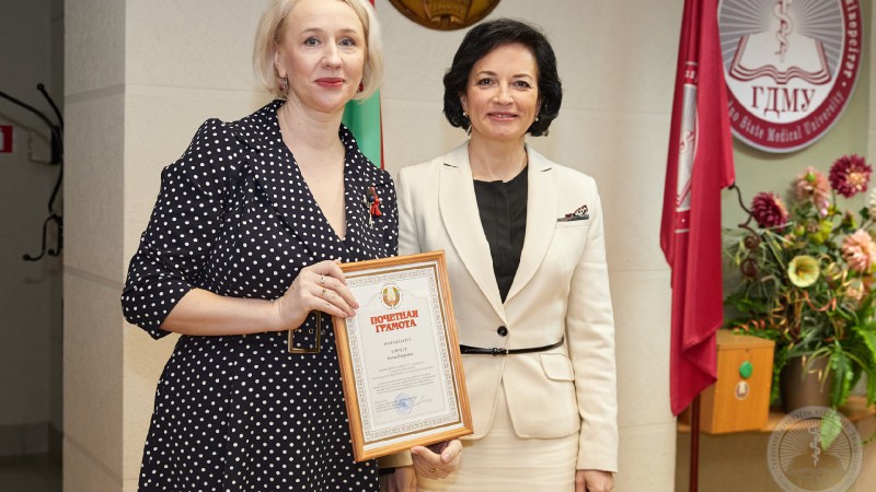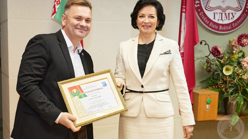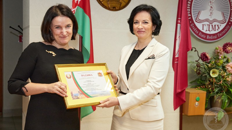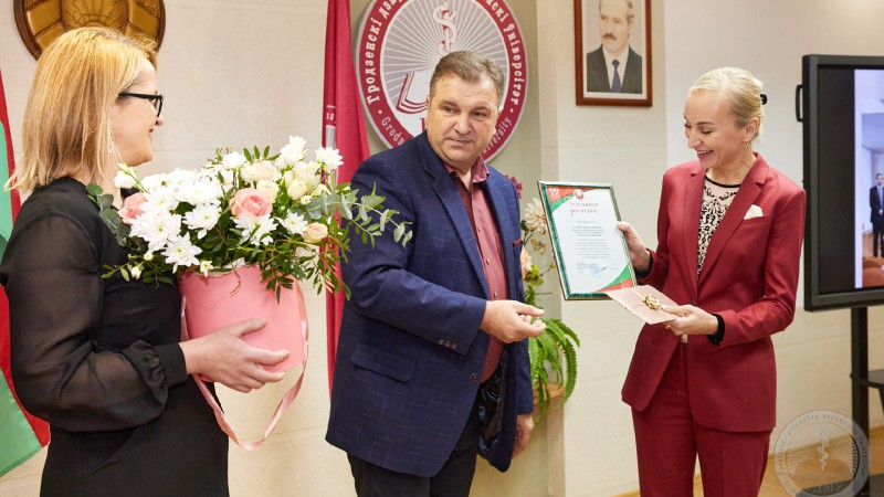 Знаменательный юбилей стал поводом для вручения почетных наград. Нагрудный знак «Отличник здравоохранения Республики Беларусь» вручили доценту кафедры акушерства и гинекологии Татьяне Владимировне Янушко. Почетными грамотами Министерства здравоохранения Республики Беларусь и Гродненского облисполкома наградили заведующую кафедрой акушерства и гинекологии Людмилу Витольдовну Гутикову.