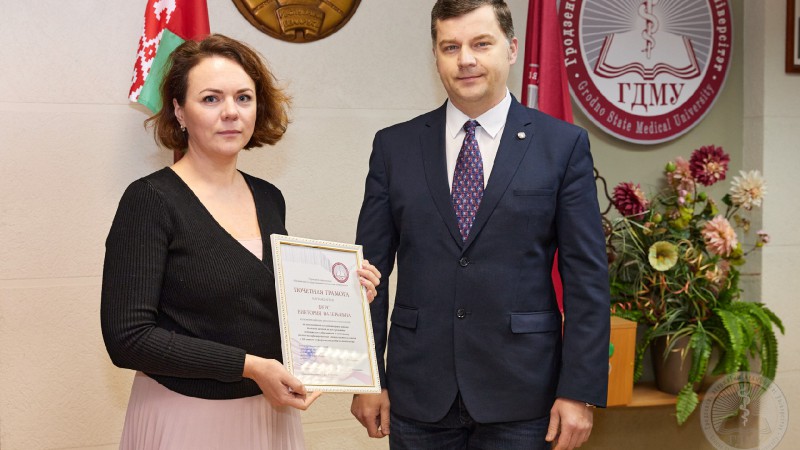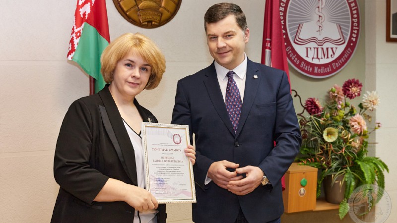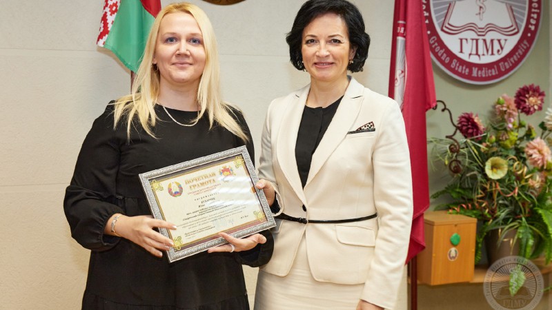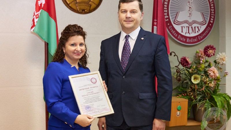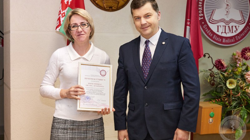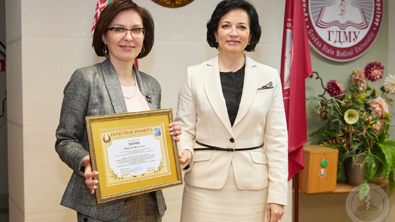К юбилею кафедры ряд ее сотрудников награждены Почетными грамотами Гродненского государственного медицинского университета. Среди них ассистенты кафедры акушерства и гинекологии Наталья Анатольевна Смолей, Виктория Валерьевна Фурс, Оксана Эдвардовна Могильницкая, Денис Эдуардович Станько, Василий Игоревич Левин, старший преподаватель Татьяна Валентиновна Новицкая.