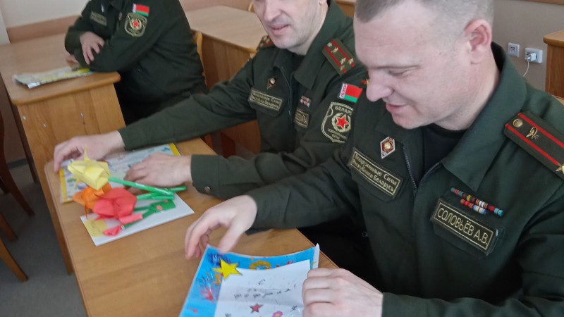 Волнительные эмоции получили адресаты от поздравлений в рисунках, аппликаций и авторских открыток от воспитанников школы-интерната N1 г. Гродно (для детей с нарушением зрения), от учащихся СШ №38 г. Гродно и кадетов, от малышей дошкольного учреждения №45 г. Гродно и их родителей, а также от детей и сотрудников Гродненского государственного медицинского университета.