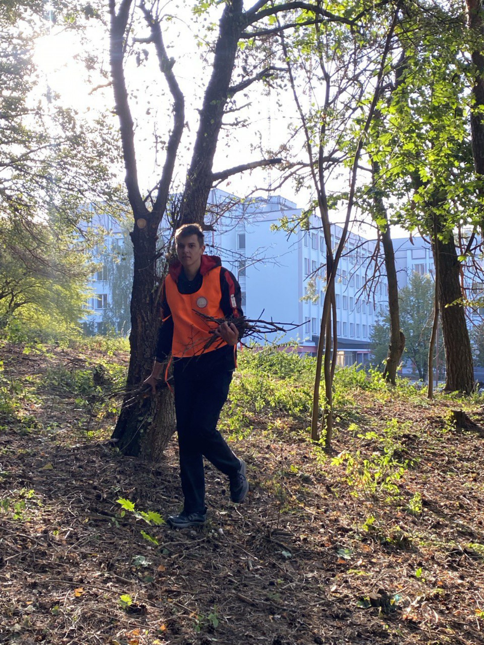 Студенты-активисты университета проявили особую инициативу в рамках эко-марафона. Ребята, проживающие в общежитиях, организовали уборку лесного массива вблизи учебного корпуса по адресу БЛК, 50.  Ребята провели комплексную санитарную очистку территории: собрали мусор, расчистили пространство от упавших веток и сухостоя.