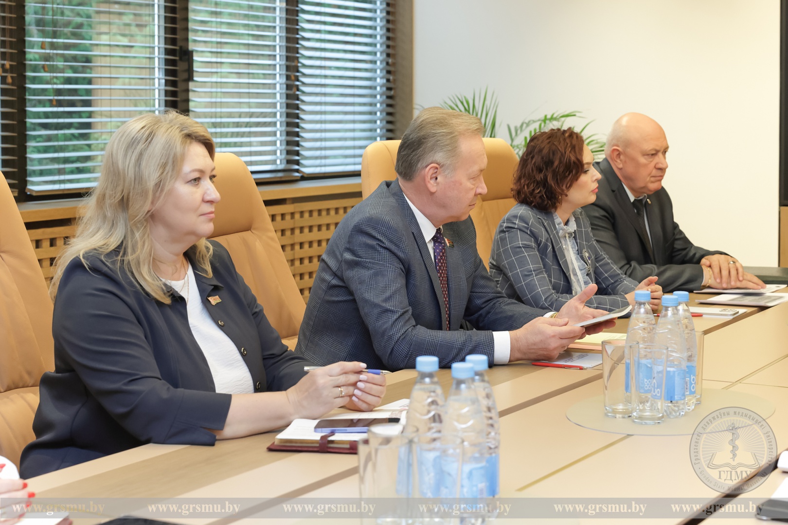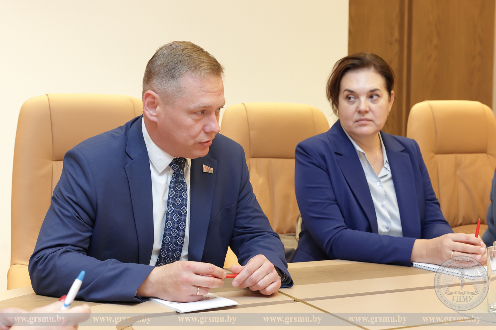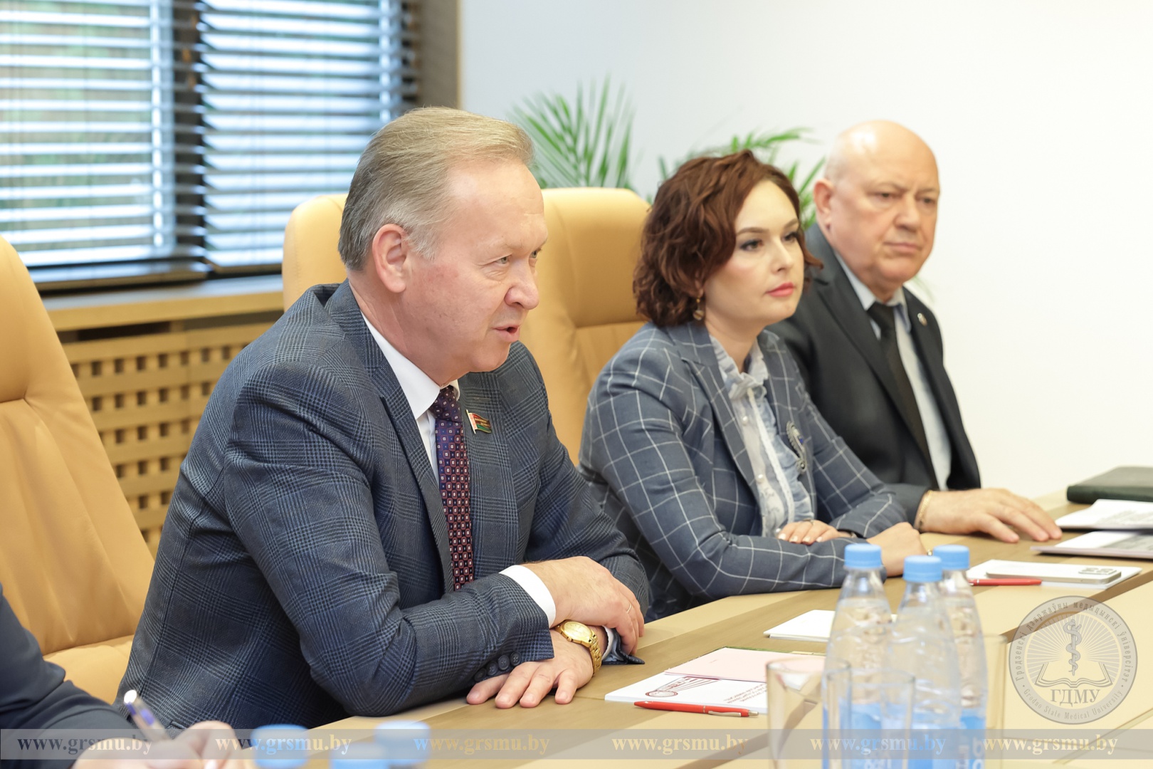 В начале встречи ректор Игорь Георгиевич Жук представил подробную информацию об университете. Он отметил, что за 67 лет существования вуз подготовил для системы здравоохранения более 30 000 практикующих врачей. ГрГМУ также активно занимается подготовкой медицинских кадров для зарубежных стран. На факультете иностранных учащихся ГрГМУ обучается свыше 1 300 студентов из 30 стран мира, среди которых есть и граждане Российской Федерации.