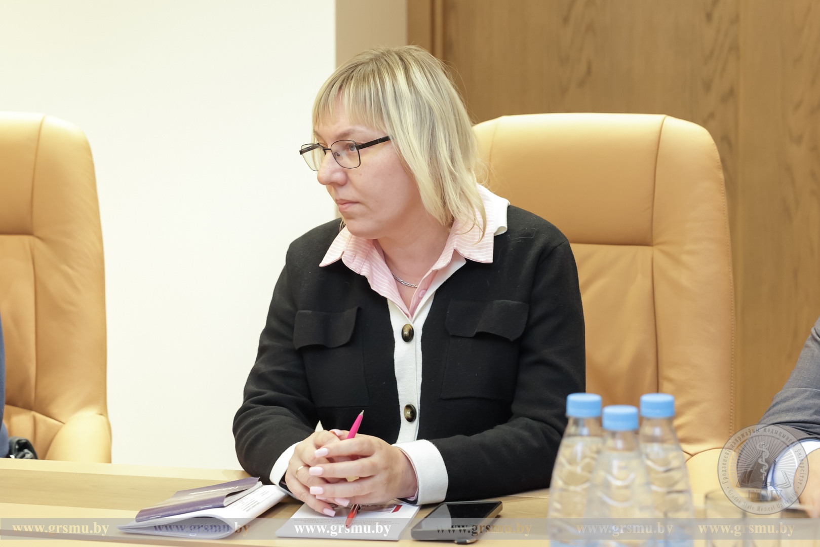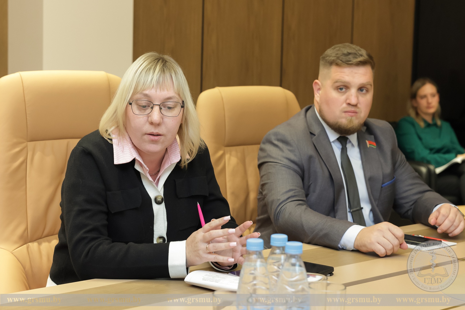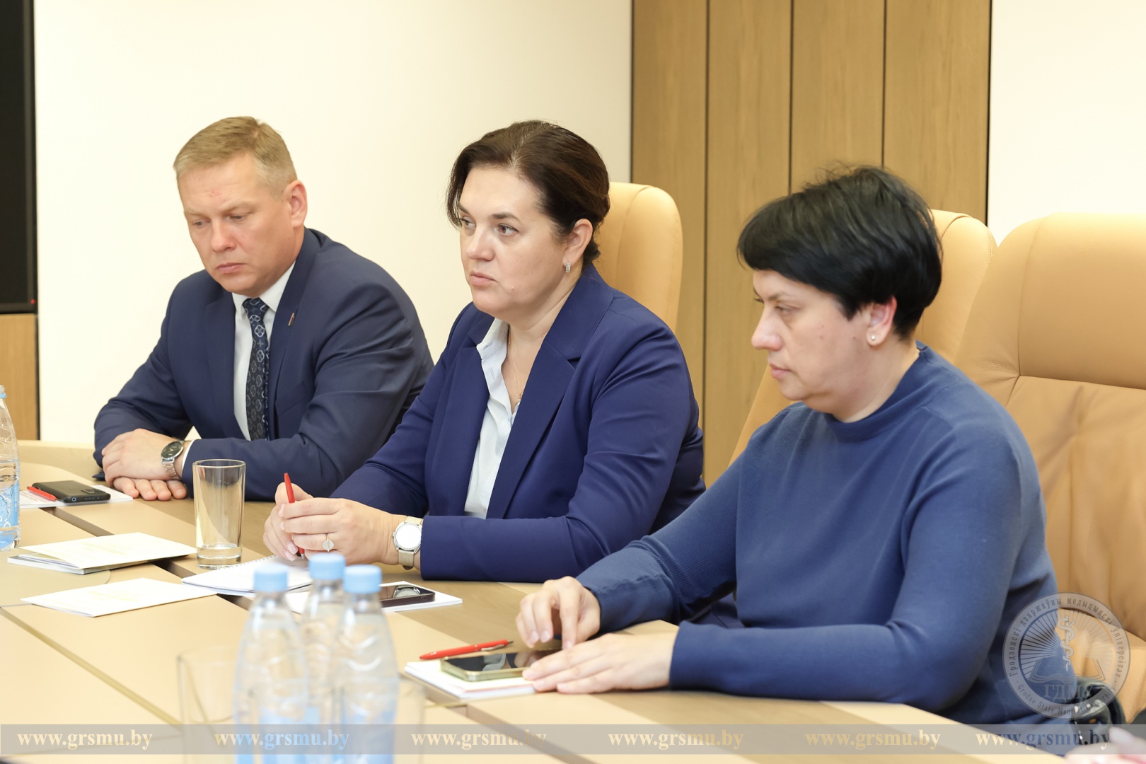 В начале встречи ректор Игорь Георгиевич Жук представил подробную информацию об университете. Он отметил, что за 67 лет существования вуз подготовил для системы здравоохранения более 30 000 практикующих врачей. ГрГМУ также активно занимается подготовкой медицинских кадров для зарубежных стран. На факультете иностранных учащихся ГрГМУ обучается свыше 1 300 студентов из 30 стран мира, среди которых есть и граждане Российской Федерации.