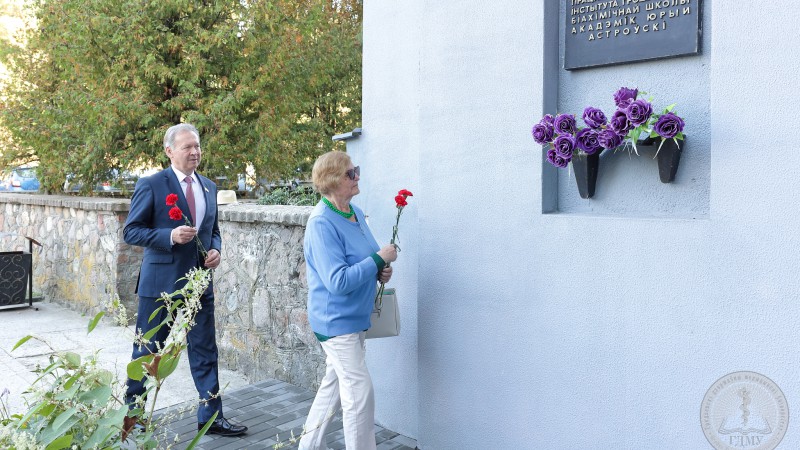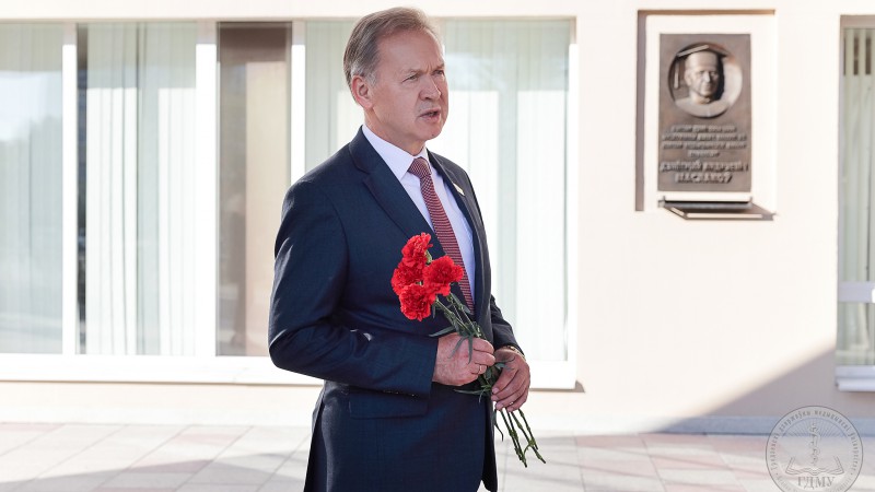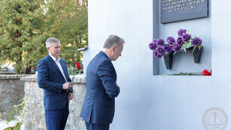 Возложение цветов к мемориальным доскам именитых ученых – Михаила Васильевича Кораблева, Юрия Михайловича Островского, Геннадия Алексеевича Обухова – прошло и на базах учебных корпусов, и на ул. Ожешко №49, где проживал профессор Обухов Г.А.