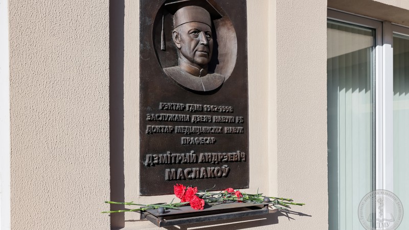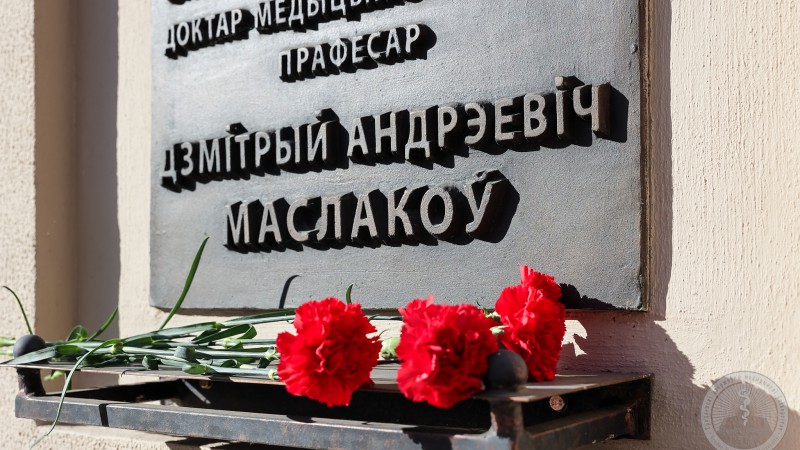 Ректор университета Игорь Георгиевич Жук, члены ректората, сотрудники и студенты у мемориальной доски Дмитрия Андреевича Маслакова почтили память знаменитого ученого, стоявшего у истоков развития не только направления патофизиологии в нашей стране, но и самого Гродненского медуниверситета.