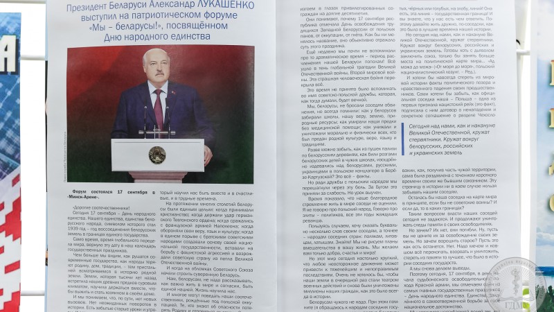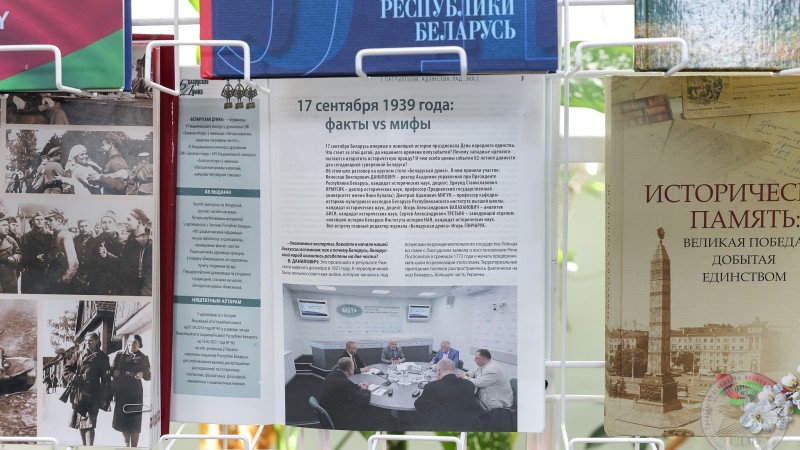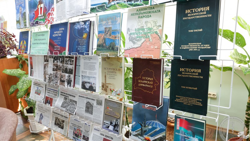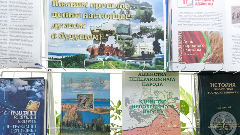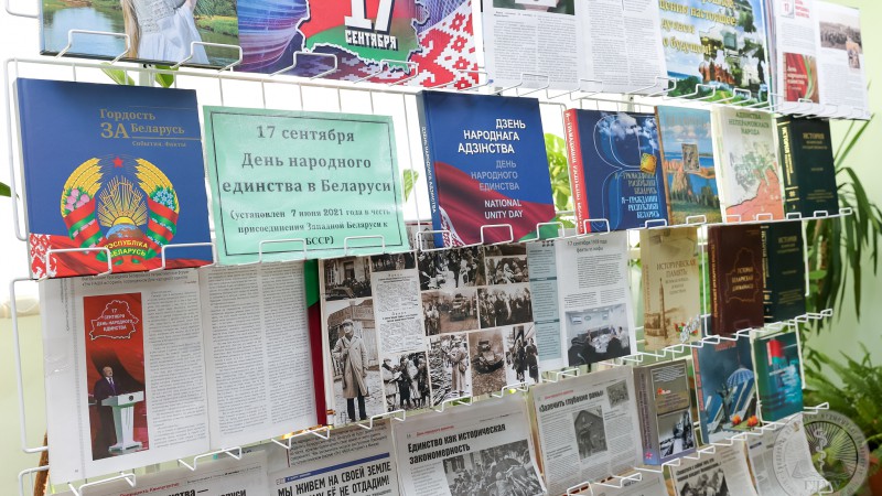 Своеобразная жемчужина библиотечной выставки – богато иллюстрированное научно-популярное издание «Дзень народнага адзінства» 2022 года, подготовленное издательством «Беларусь». Книга, изданная на трех языках – белорусском, русском и английском – рассказывает о преемственности поколений, стойкости и самодостаточности белорусской нации и белорусской государственности. И сегодня белорусский народ един в выборе стратегического курса развития мощной суверенной процветающей республики.