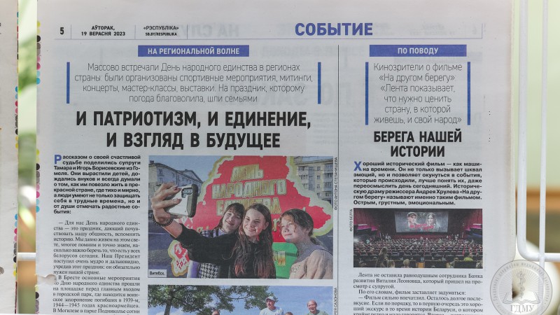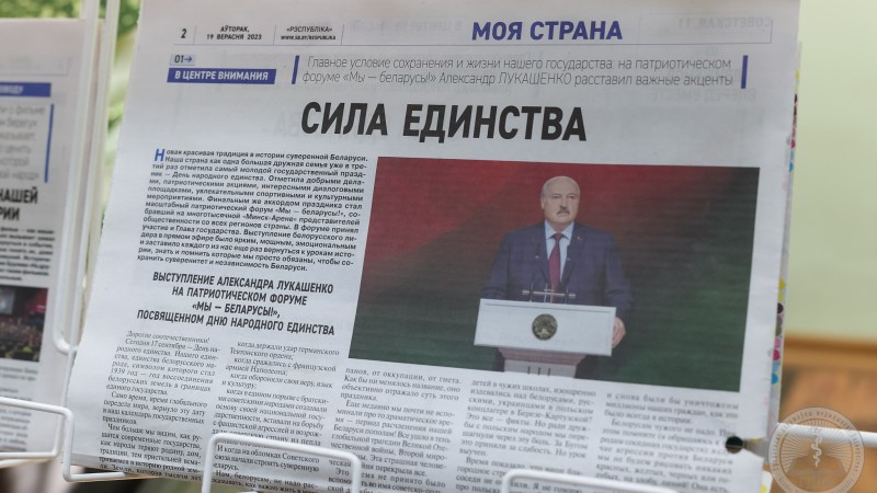 Значительная часть выставки, расположенной в читальном зале главного корпуса ГрГМУ, посвящена публикациям и материалам, знаменующим учреждение нового государственного праздника как символа единения белорусов. Помимо материалов, представленных в печатных СМИ, здесь можно найти книги по истории белорусской государственности, редкие издания, посвященные историческим фактам становления белорусской государственности.