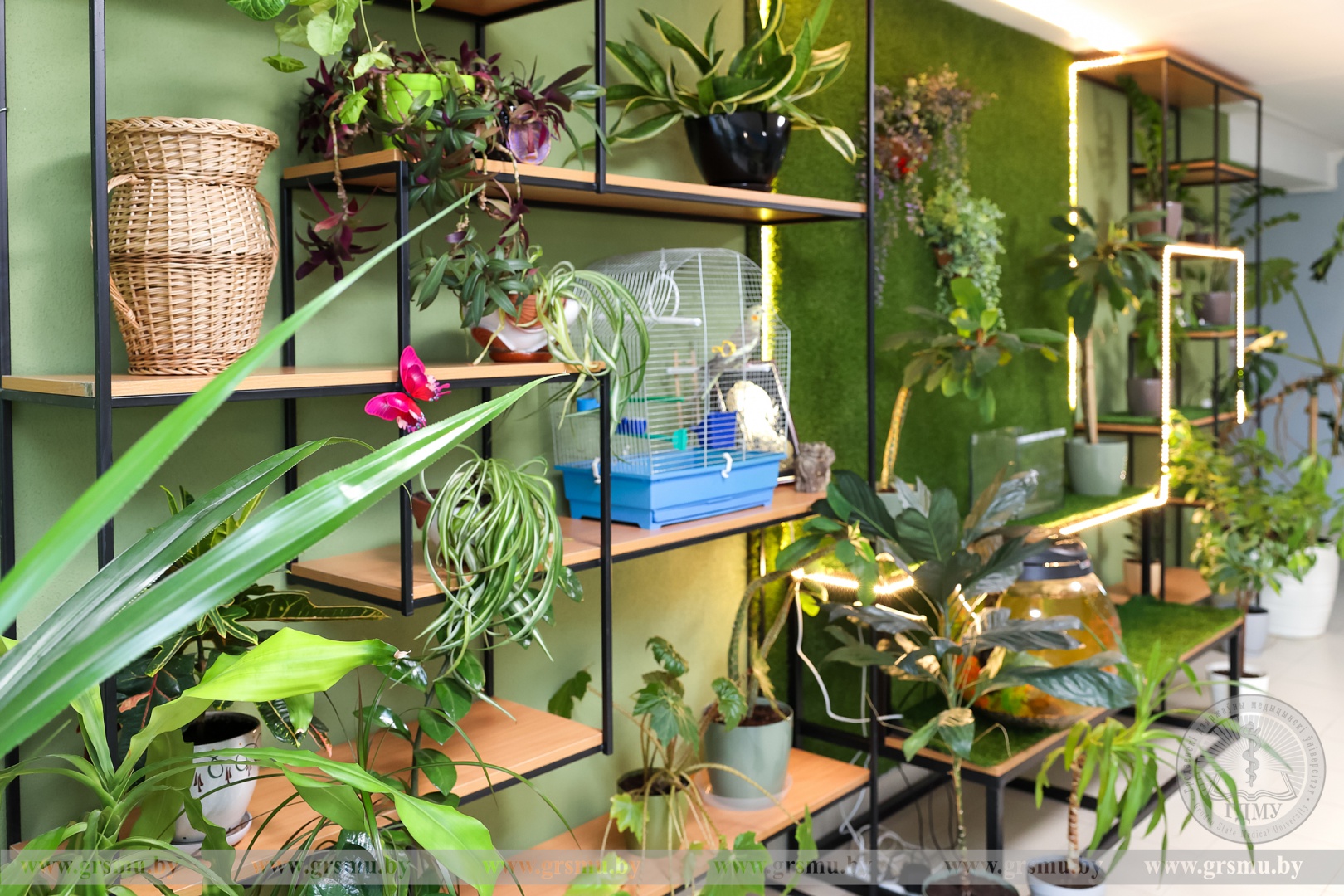 В обеих рекреациях имеются большое количество растений: фикус «Кротон», пальма «Арека», «Стрелиция Николая», монстера, фикус Бенджамина, диффенбахия, зимиокулькас, филодентрон, калатея, папоротник, сансевиерия, или «Щучий хвост», алоказия, хлорафитум, драцена, юкка, «денежное дерево», инжир, манго, сингониум, араукария, фикус Бенджамина «Кинки», фикус «Лиратто», бамбук, драцена «Маргината», которые направлены на создание уюта, релакса, подчеркивают экзотическую направленность в зоне отдыха «Зеленый оазис» и поэтическую, творческую составляющую в зоне отдыха «Мой беларускі край чароўны».