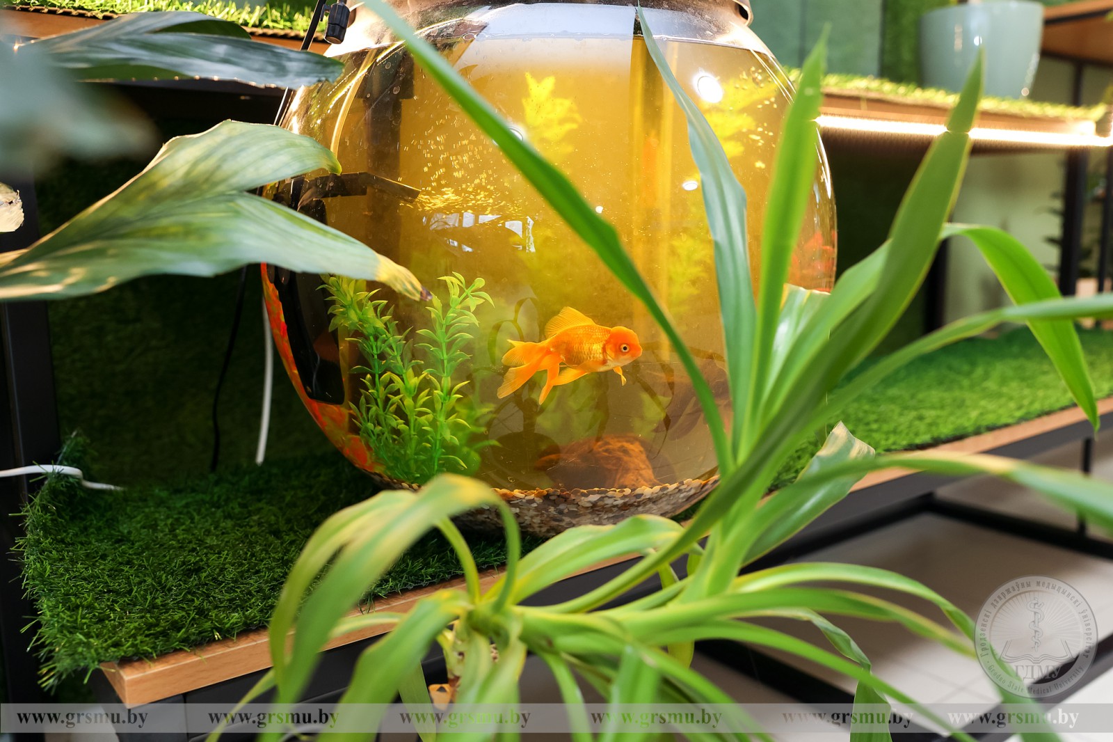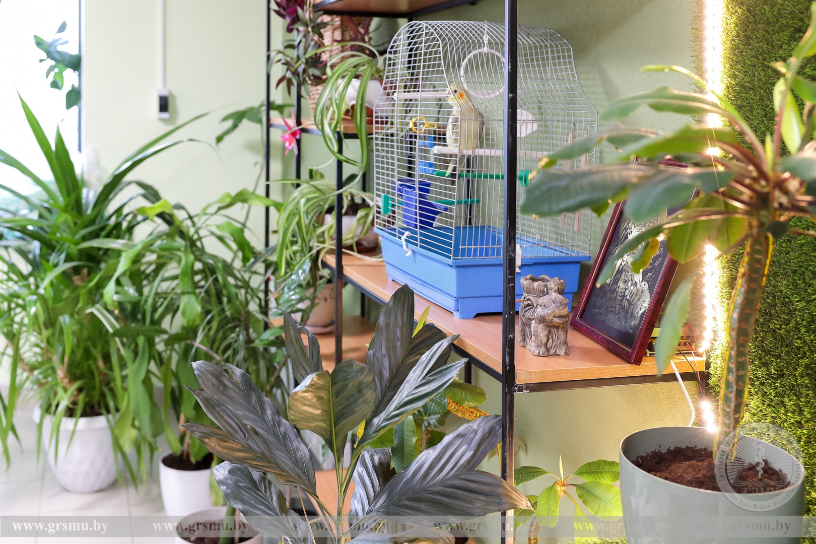 Картина на стене, изображающая природу их края, экзотические растения, аквариум с рыбками, террариум с черепахами, клетка с попугаем, – всё это должно создать благоприятную атмосферу, которая поможет иностранным студентам ГрГМУ быстрее адаптироваться к проживанию и обучению в нашей стране.