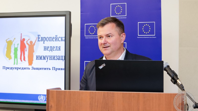 В приветственном слове ректор Гродненского медуниверситета подчеркнул важность той деятельности, которая организована в стране по проведению с населением профилактическо-разъяснительной работы о неоспоримой важности и необходимости своевременной иммунизации.