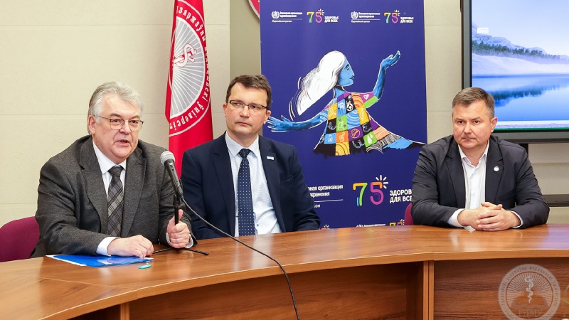 Сергей Диордица до назначения в августе 2022 года представителем ВОЗ в РБ был руководителем иммунизационных программ ВОЗ, поэтому сегодняшний визит в ГрГМУ проходил как под эгидой 75-летия ВОЗ, так и проведения Европейской недели иммунизации, в этом году выпавшей на 24-28 апреля. Тема недели иммунизации в этом году связана с фактором пропуска одной из основных вакцинаций.