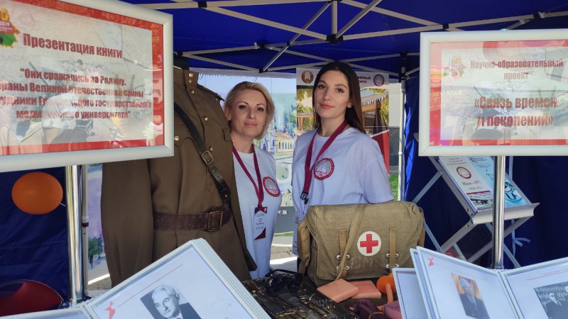 Гражданско-патриотический проект ГрГМУ «Связь времён и поколений» для гостей фестиваля подготовили начальник ОСОиМ Ольга Сизова и заведующий Музеем истории университета Яна Законникова.