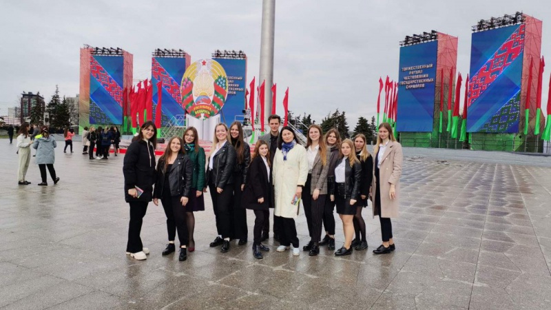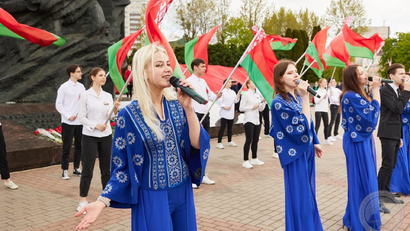 В этот же день представители ГрГМУ приняли участие в торжественном ритуале чествования государственных символов в Минске. Мероприятие проходило на площади Государственного флага, где представители молодежи принесли клятву верности госфлагу нашей страны. Здесь специально к празднику разместили выставку, на которой гости праздника могли познакомиться с историей создания площади Государственного флага, геральдики городов Беларуси и государственных символов страны.