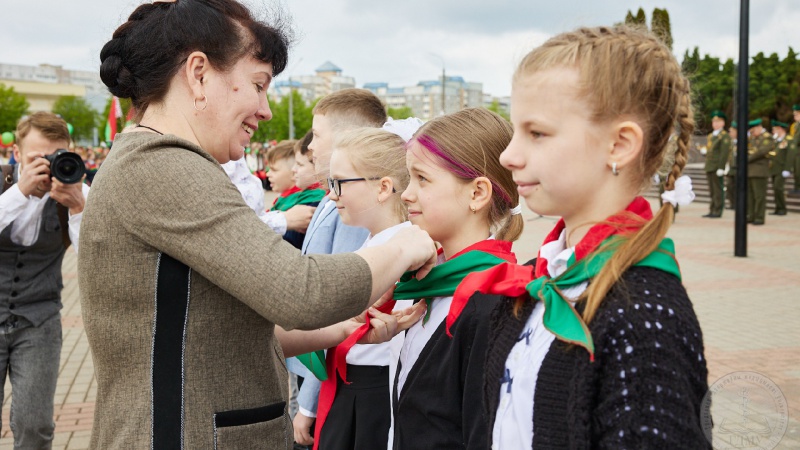 Во время торжественной церемонии участники праздника спели гимн Республики Беларусь, лучшие учащиеся гродненских вузов и школ удостоились права поднять флаг нашей страны. Среди них – студентка 6 курса педиатрического факультета ГрГМУ Полина Жесткина.