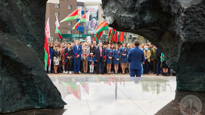 В Гродно основные мероприятия прошли у мемориального комплекса воинам-пограничникам. Здесь состоялся торжественный митинг с участием представителей власти, депутатского корпуса, ветеранов, трудовых коллективов, горкома БРСМ, профсоюзных и общественных организаций, учебных заведений города. В их числе была и делегация Гродненского государственного медицинского университета во главе с ректором Игорем Георгиевичем Жуком.