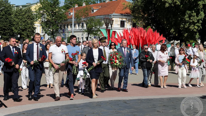 Руководство Гродненского медицинского университета, сотрудники и студенты традиционно присоединились к праздничным мероприятиям, посвященным Дню Независимости Республики Беларусь и 80-летию освобождения Республики Беларусь от немецко-фашистских захватчиков.