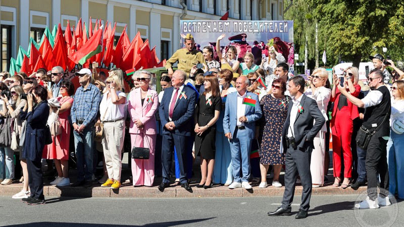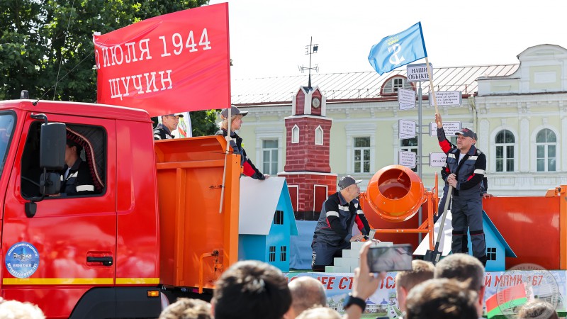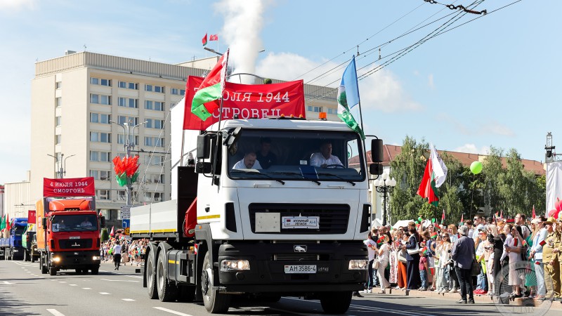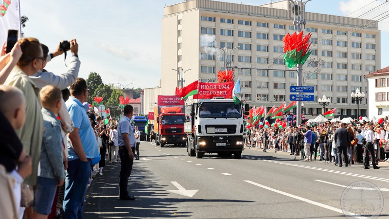 Продолжилось празднование автопарадом достижений Гродненской области в различных сферах.  Следом на площади Ленина прошел торжественный митинг «Мы сможем всё, если вместе!».