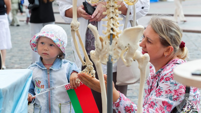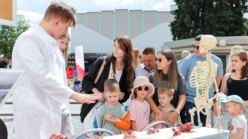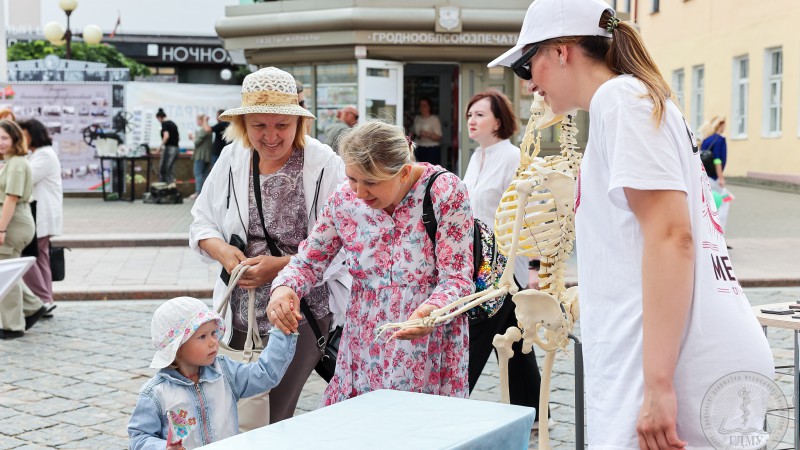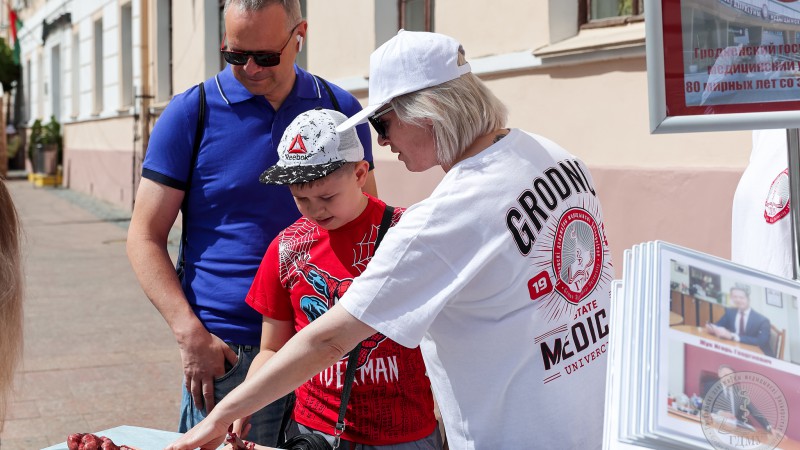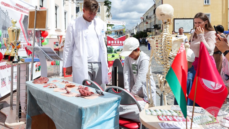 Локация Гродненского государственного медицинского университета располагалась напротив Молодежного центра «Гродно». Здесь наш вуз представил эспозиционно-выставочную площадку, где каждый смог ознакомиться с наградами и достижениями университета, узнать историю ГрГМУ, увидеть тематические издания, посвященные ветеранам Великой Отечественной войны – сотрудникам Гродненского государственного медицинского университета. Особое внимание гостей локации привлекла выставка симуляционного оборудования, где каждый смог проверить свои знания по проведению сердечно-легочной реанимации, изучить анатомию человека и получить компетентные советы от наших студентов – будущих врачей.