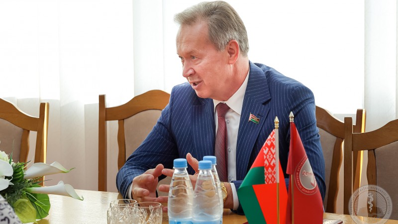 В рамках встречи ректор также подробно рассказал об университете. В ГрГМУ обучается около 5000 студентов, в этом году ряды первокурсников пополнили 678 студентов, которые с первых дней погрузились в учебу. Обучение в вузе проходит на 45 кафедрах, из них 26 клинических, что позволяет ближе знакомиться с деятельность практического здравоохранения. Для иностранных студентов обучение проходит на английском языке. Игорь Георгиевич подчеркнул, что диплом ГрГМУ высоко ценится выпускниками факультета иностранных учащихся, и они успешно подтверждают полученные дипломы в своих странах.