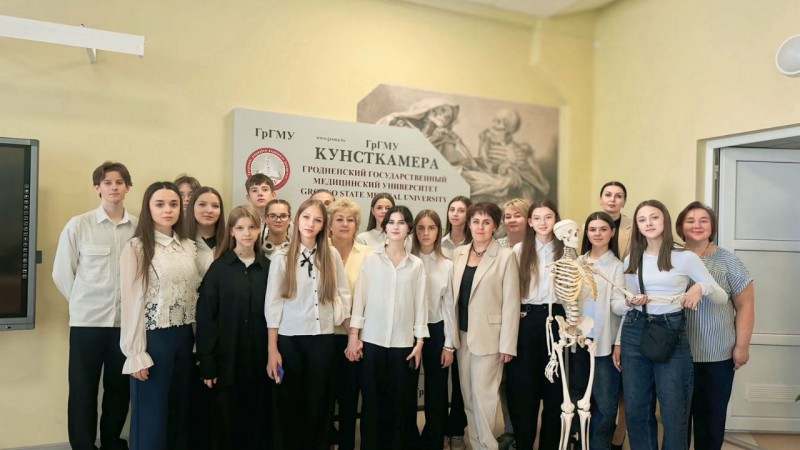 После подписания договора для гостей провели обзорную экскурсию по университету, показали музей истории ГрГМУ и познакомили с анатомической экспозицией «Гродненская кунсткамера».