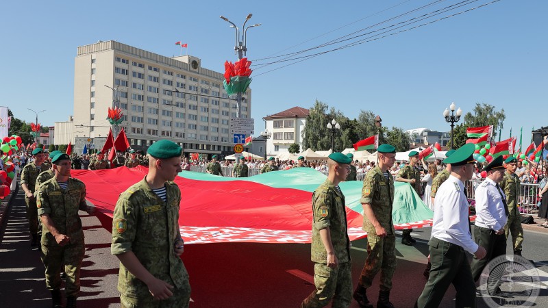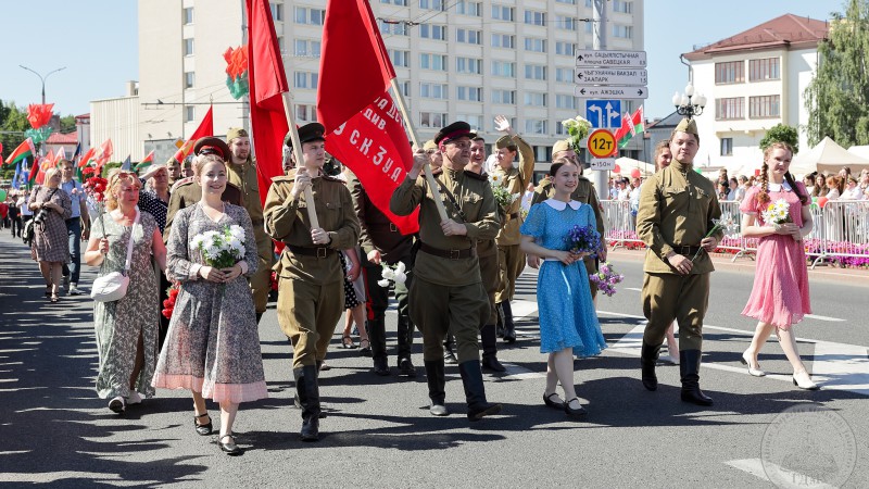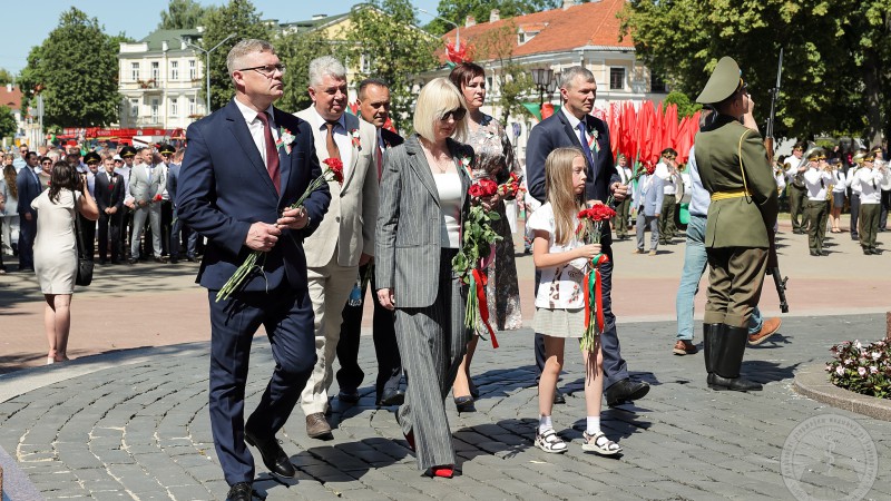 Торжественные мероприятия в Гродно начались с шествия поколений. Далее состоялся торжественный митинг «Страна замечательных людей». Следом прошла церемония возложения цветов и венков к памятнику воинам и партизанам, погибшим в годы Великой Отечественной войны. На площади Антония Тызенгауза и на улице Дзержинского работала выставка служебной техники «Техника моего города».