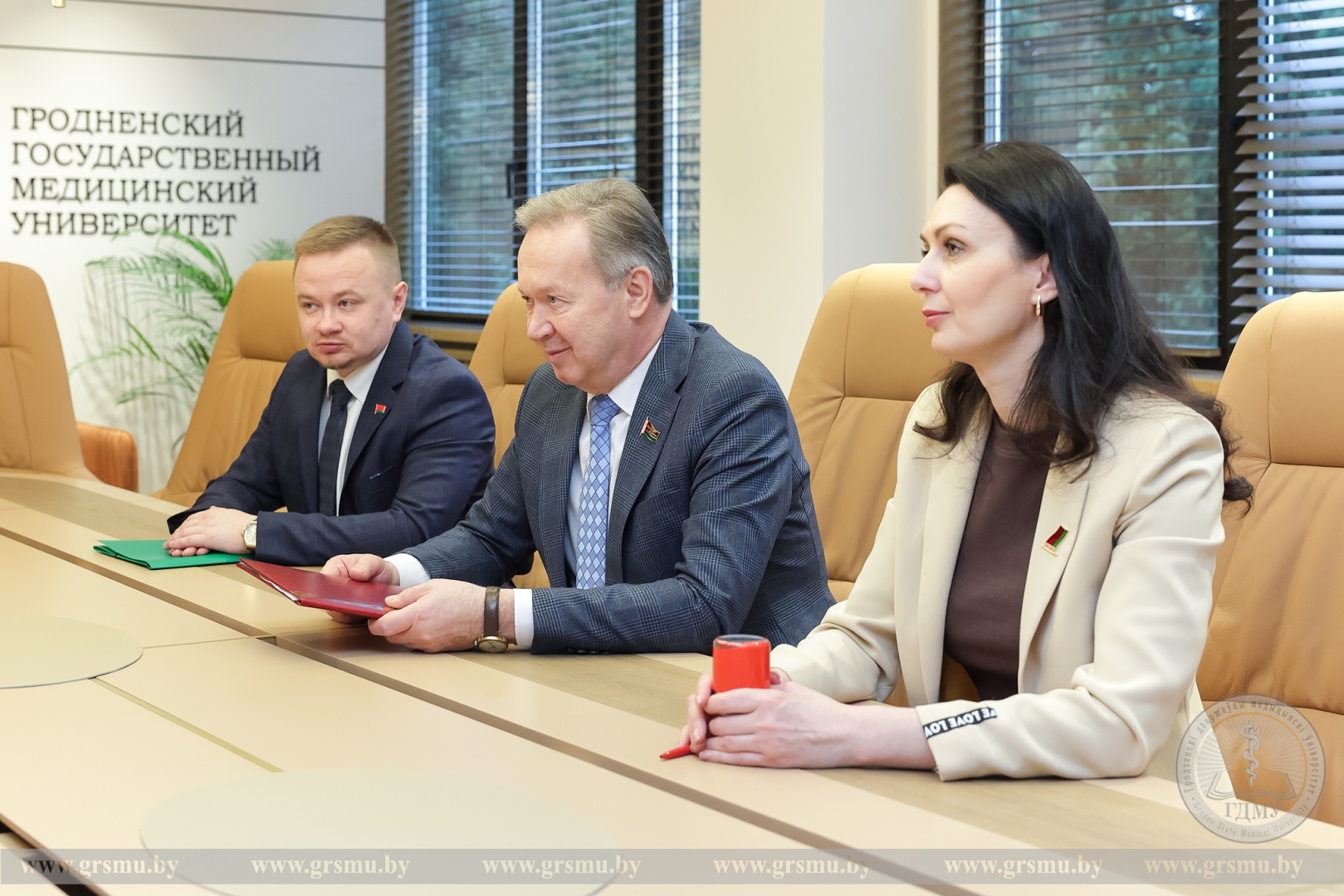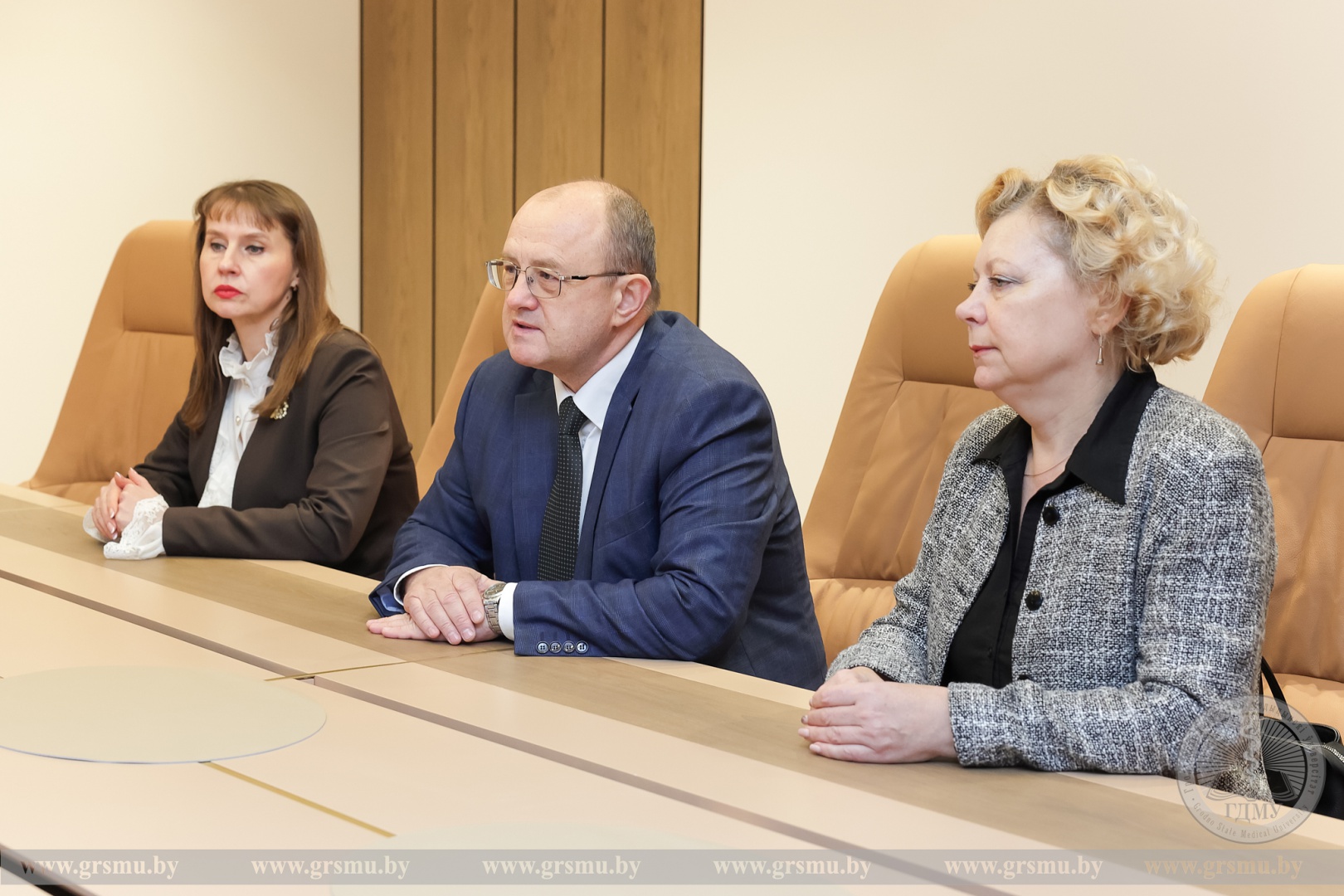 В свою очередь, ректор ГрГМУ Игорь Георгиевич Жук ознакомил коллег с возможностями университета, сделав акцент на непрерывности образовательного цикла – от поступления до профессионального становления выпускника. Он особо отметил работу сектора поддержки молодых специалистов и врачей‑интернов, который оказывает помощь выпускникам в течение пяти лет после окончания обучения.