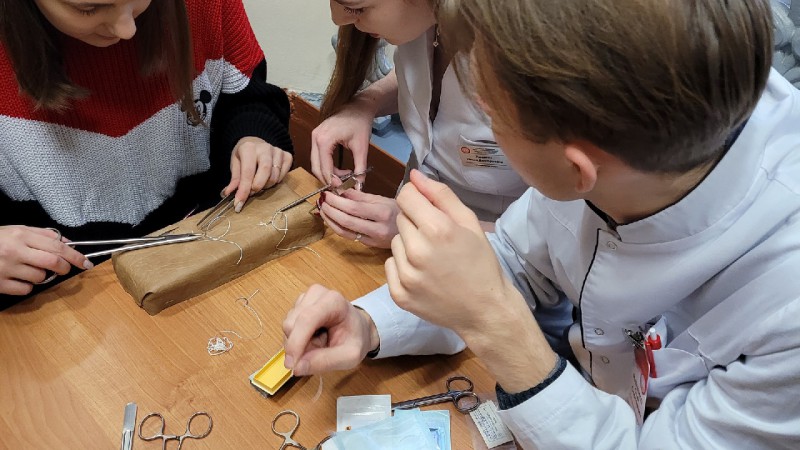 Около 300 учащихся лицея узнали о каждом факультете, попробовали шить и вязать хирургические узлы, выполнять реанимационные мероприятия, читать рентгенограммы и оценивать анализы под микроскопом, пеленать модели новорожденных, ставить катетеры на муляжах, и даже осмотрели все органы человеческого тела на анатомической микромодели.