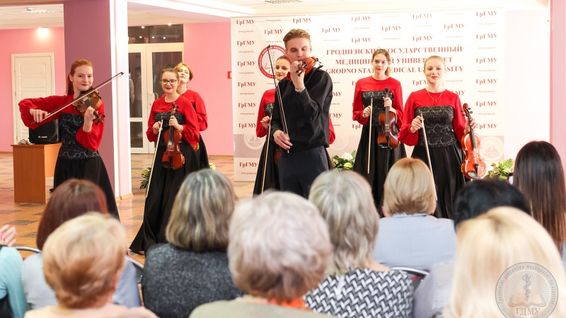 Искренние слова благодарности и теплые пожелания женщинам: в Гродненском медуниверситете накануне 8 Марта прошел праздничный концерт