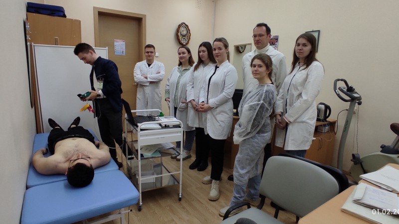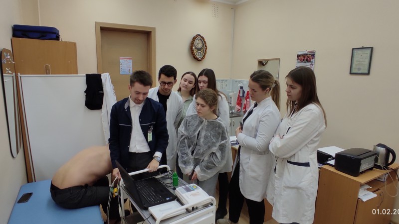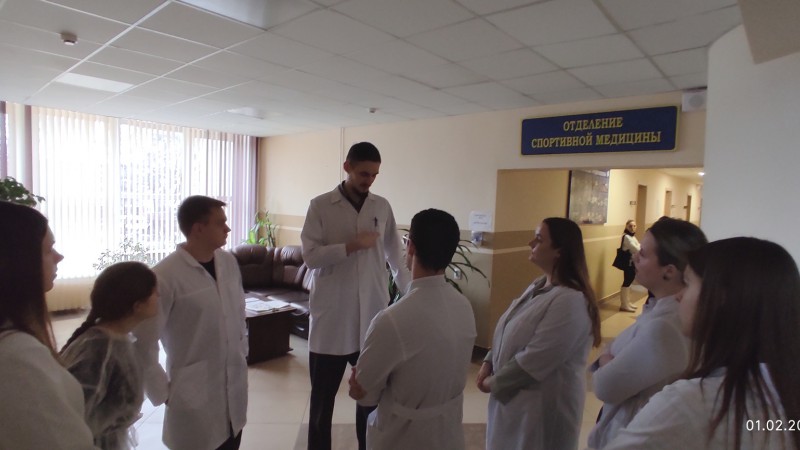 Врач спортивной медицины Шулейко О.Б. провел для участников экскурсию по диспансеру и познакомил с методами, применяемыми в процессе диагностики, лечения и реабилитации спортсменов. В завершение экскурсии врач спортивной медицины Андрейчик К.О. продемонстрировал студентам работу уникальной системы многофакторной экспресс-диагностики прогнозирования реакции на физическую нагрузку. В процессе диагностики у некоторых участников школы был обнаружен высокий уровень физической подготовленности.