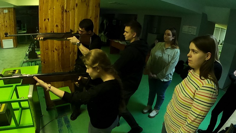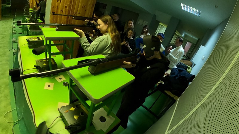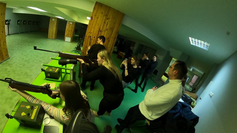 После небольшого перерыва участники зимней школы переместились на территорию спортивно-стрелкового комплекса Белорусского физкультурно-спортивного общества «Динамо». Инструктор ССК, Борис Виктор Адамович, мастер спорта по самбо, познакомил участников школы со спецификой работы и историей комплекса, рассказал об известных спортсменах и тренерах и, конечно же, провел мастер-класс по стрельбе из пневматической винтовки. На память участники с собой забрали хорошее настроение и мишени с собственными результатами тренировки.