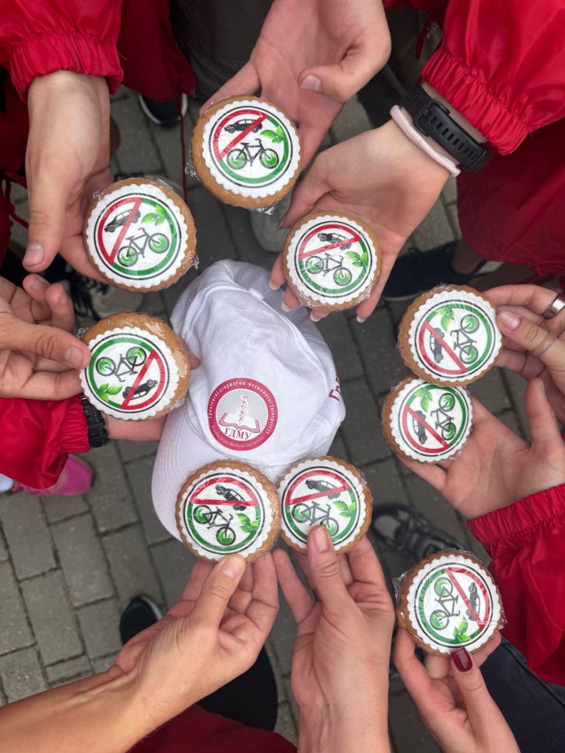 Акция «День без автомобиля» стартовала возле памятника узника лагеря смерти «Шталаг-324». Далее состоялся велопробег «Гродненцы за чистый воздух». Маршрут пролегал от мемориала «Шталаг-324» через улицы Ольги Соломовой, Краснопартизанская до Левонабережной. Участие в велопробеге принял и коллектив Гродненского государственного медицинского университета во главе с проректором по идеологической и воспитательной работе Ириной Андреевной Курстак. Всего к экоакции присоединились порядка 20 сотрудников, преподавателей и студентов нашего вуза.