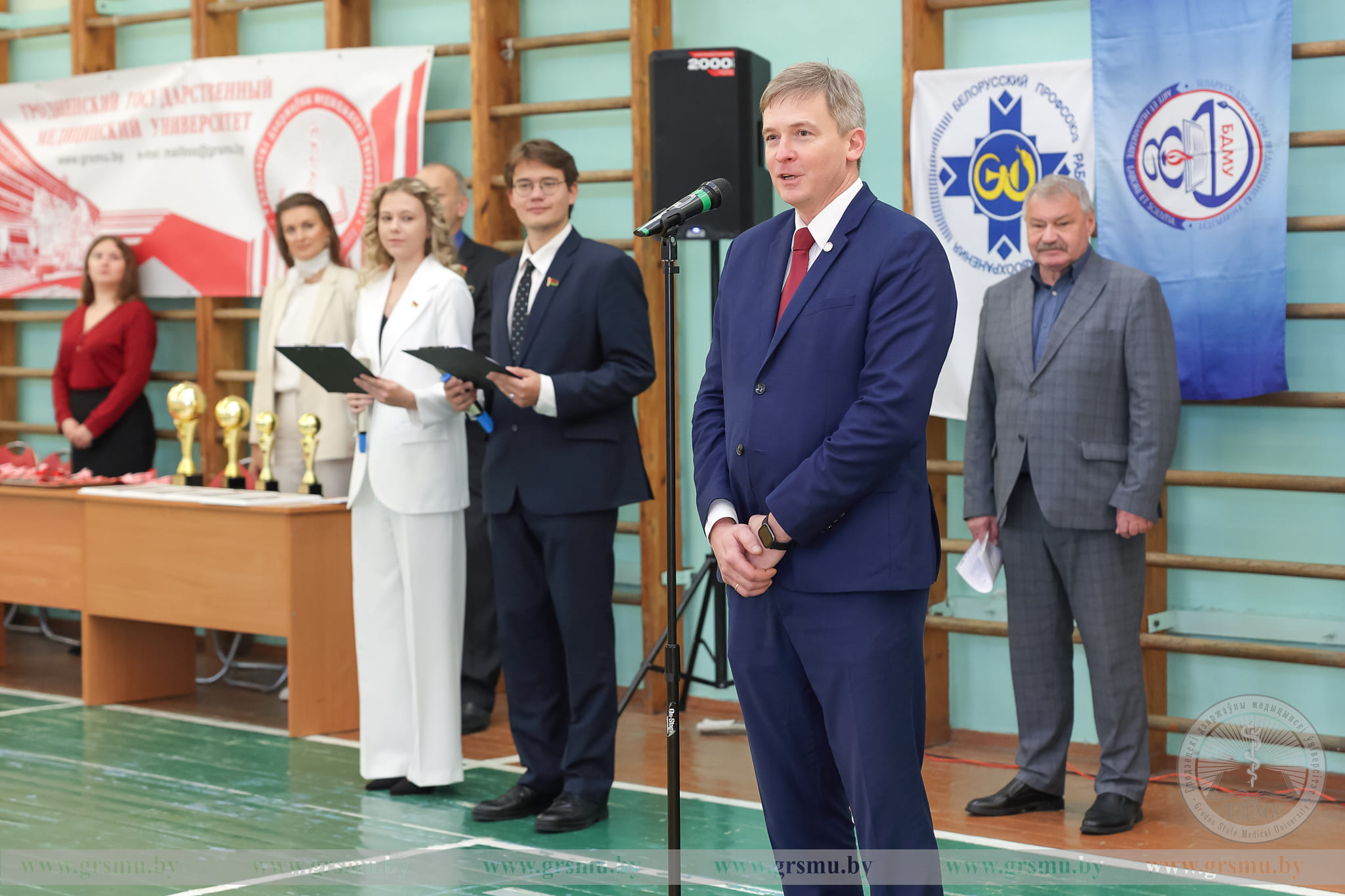 От имени Гродненской областной организации профсоюза работников здравоохранения к участникам обратился Владислав Робертович Голяк. Он поздравил всех с успешным завершением волейбольных состязаний, подчеркнув, что спорт и здоровье – это те ценности, которые особенно важны для будущих медицинских работников.