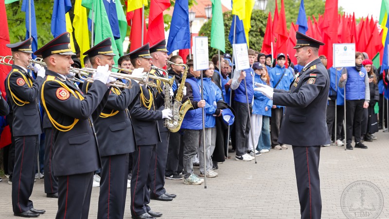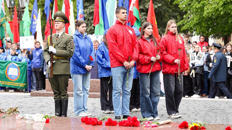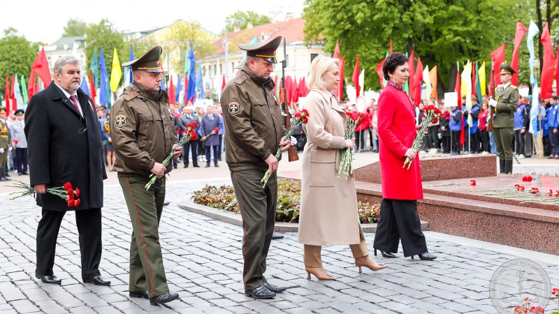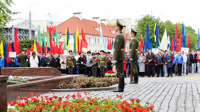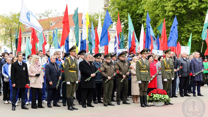 Заключительный день марафона начался с торжественного митинга и возложения цветов к Братской могиле советских воинов и партизан, погибших в Великой Отечественной войне, в парке Жилибера. Участие в нем приняла и делегация Гродненского медицинского университета во главе с проректором по идеологической и воспитательной работе Ириной Андреевной Курстак. Среди приглашенных гостей также были представители местной власти, руководство вузов, представители команд-участниц.