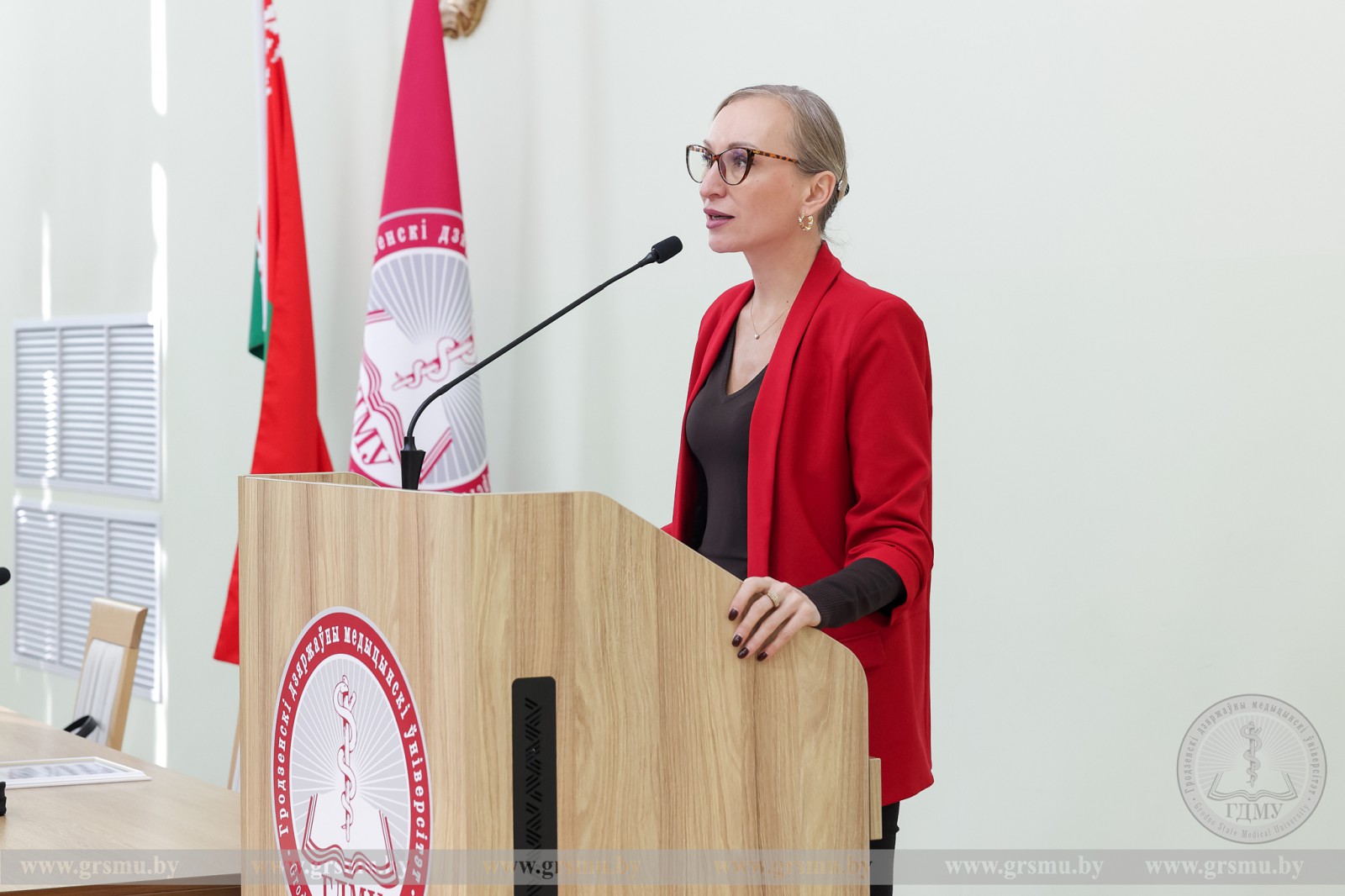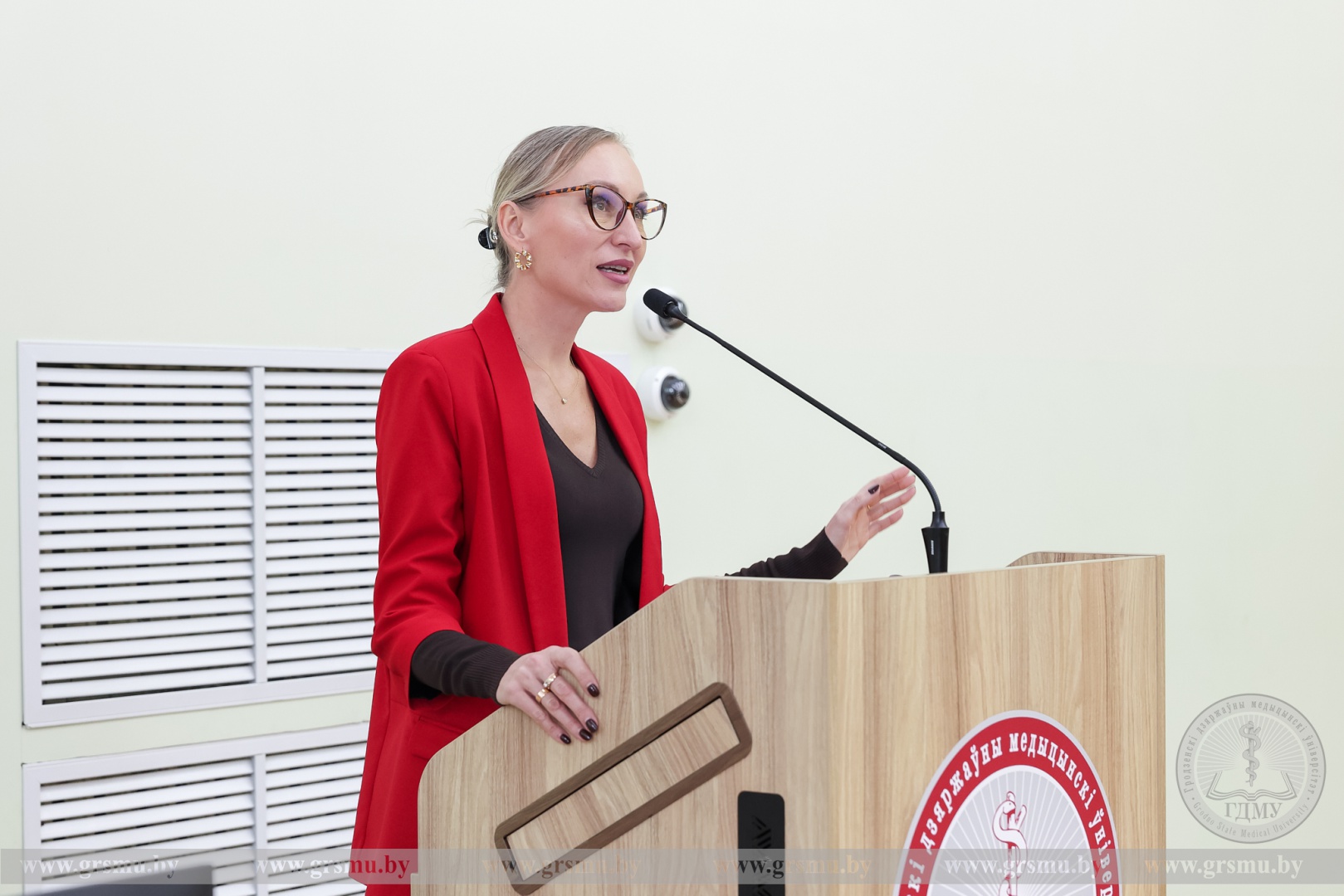 Наталья Валерьевна Хворик, кандидат медицинских наук, доцент кафедры, представила подробный анализ развития акушерско-гинекологической службы Гродненской области. Доклад осветил ключевые этапы становления и современные достижения региональной медицины.
