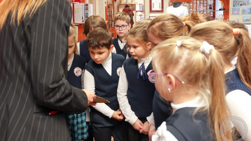 – Зачастую наш музей истории Гродненского медуниверситета посещают учащие девятых-одиннадцатых классов. Многие из них собираются поступать в наш вуз и такие экскурсии позволяют поближе познакомиться с будущей профессией. У ребят появляется уникальная возможность увидеть подлинники документов, фотографии из личных архивов ученых и студентов, памятные знаки, медицинские инструменты, награды, интересные экспонаты, таким образом погрузиться в жизнь университета, – рассказала заведующий музеем истории ГрГМУ Яна Витальевна Законникова. – С образовательными учреждениями, и не только нашего города, мы находимся в тесном контакте: на экскурсии приходят обучающиеся не только школ, но и лицеев, колледжей, других университетов. И впервые наш музей решили посетить учащиеся 3 класса.
