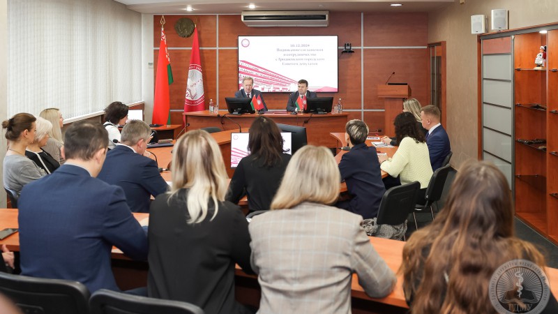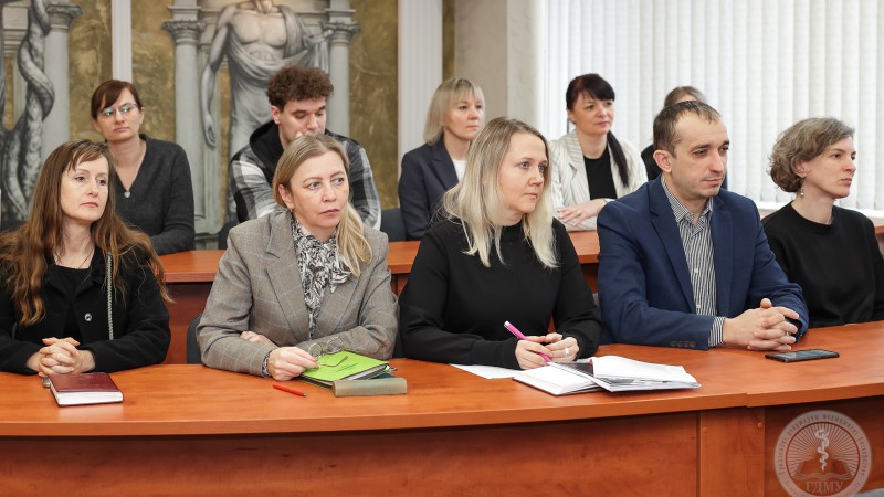 Участие в мероприятии приняли ректор ГрГМУ, член Совета Республики Национального собрания Игорь Георгиевич Жук, председатель Гродненского городского Совета депутатов Олег Геннадьевич Белинский, руководство вуза, деканы факультетов, преподавательский состав, сотрудники структурных подразделений. Главной темой встречи стало подписание соглашения о сотрудничестве между Гродненским медуниверситетом и городским Советом депутатов.
