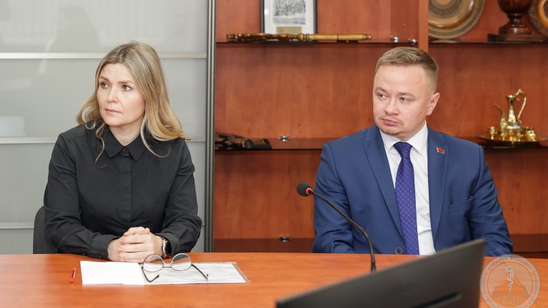 – 21 мая этого года при Гродненском городском Совете депутатов создан и сейчас активно работает Молодежный парламент. В состав вошел 31 человек, исходя из численности депутатского корпуса. И чтобы юридически подкрепить нашу обоюдную работу, мы подписываем соглашения между организациями и органами, с которыми мы взаимодействуем. Это дает возможность для еще более тесного сотрудничества и реализации совместных проектов, – сказал Олег Геннадьевич. – Шесть студентов ГрГМУ вошли в Молодежный парламент, и хочется отметить, что это самые активные и инициативные члены парламента. Например, ваш студент Матвей Лянцевич является председателем Молодежного парламента, а также председателем комиссии по социальной политике и здравоохранению Молодежного совета при Национальном собрании Республики Беларусь. И это показывает высокую заинтересованность нашей молодежи в жизни и развитии страны.