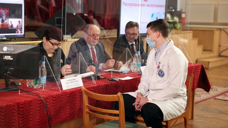 – Сегодня стартовала кампания предварительного распределения. Традиционно она проходит в три этапа. Первый – на уровне университета и деканатов, второй – встреча выпускников с потенциальными нанимателями. Третий, окончательный этап, проходит с участием Министра здравоохранения, – сказала начальник главного управления организационно-кадровой работы Министерства здравоохранения Республики Беларусь Ольга Николаевна Колюпанова. – В этой кампании, как и в предыдущем году, учитываем пожелания выпускников, возможности нанимателей, а также вклад студентов в борьбу с пандемией.