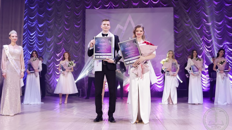 Титул «Мисс и Мистер Вдохновение» завоевали студентка медико-психологического факультета Полина Швец и студент медико-диагностического факультета Дмитрий Карасёв.