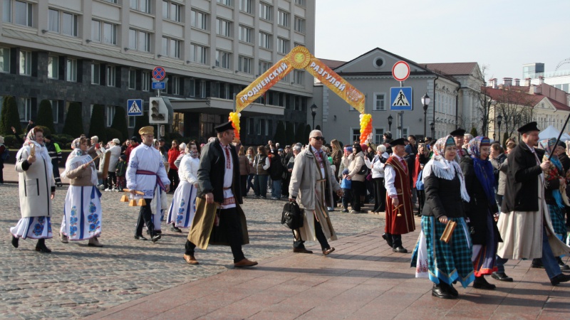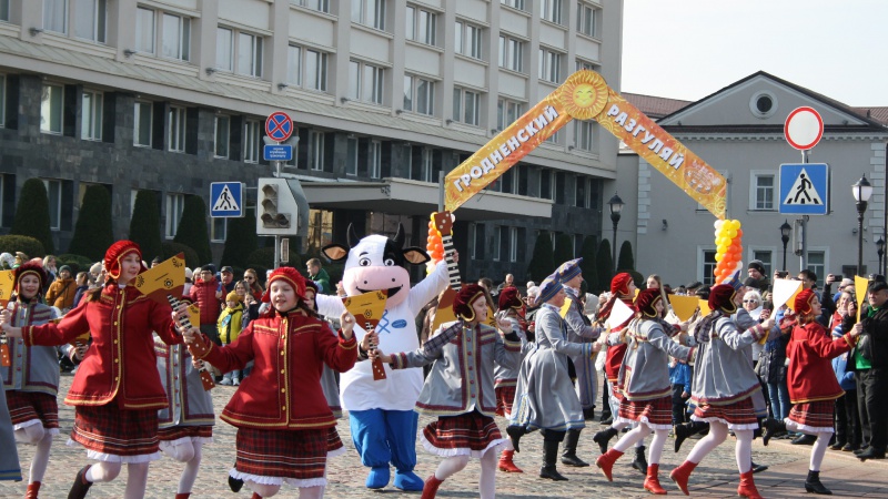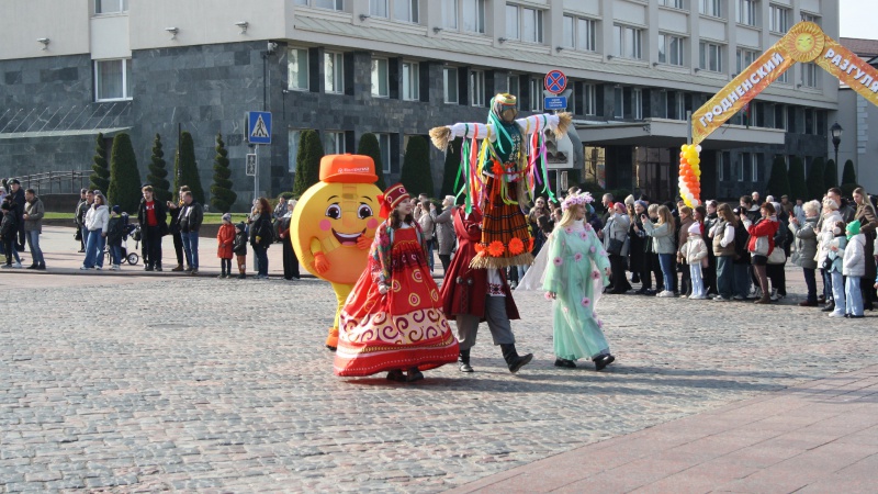 В 2024 году Масленица в Гродно сменила локацию. Традиционно несколько лет подряд весенние гуляния проходили в Пышках. В этом году праздненство развернулось в самом центре города. Это был настоящий фестиваль под названием "Гродненский разгуляй". В ярких красочных костюмах участники шествовали по улицам Гродно, неся куклы, игрушки, чучела Масленицы. Затем жители и гости Гродно водили хороводы, танцевали, пели песни, соревновались в подбрасывании блинов на сковородках. Традиционно в конце празденства сожгли чучело Масленицы, так что можно с уверенностью сказать, что проводы зимы получились горячими! Теперь мы с нетерпением ждём, когда весна вступит в свои права и порадует нас первоцветами, возвращением перелётных птиц, первой зеленью деревьев и ярким весенним солнышком!