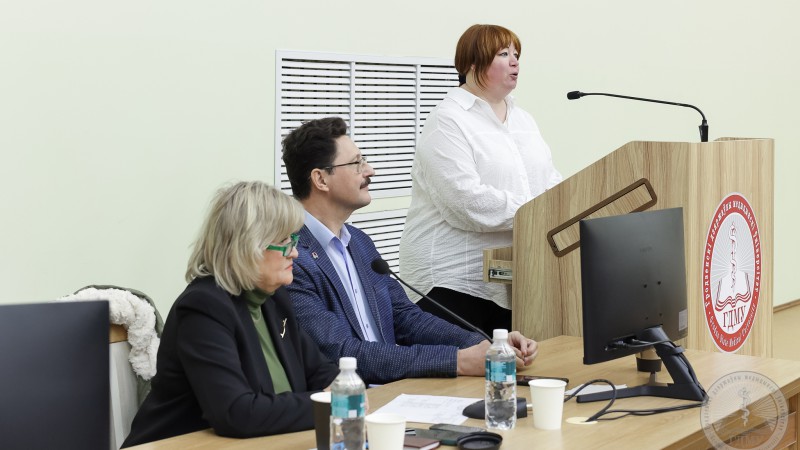 С приветственным словом на семинаре выступила  Юлия Александровна Кулик, главный специалист по педиатрии УОМП (Управление организации медицинской помощи), которая поблагодарила наш вуз за предоставление площадки для обсуждения важных тем в пульмонологии. Отдельные слова признательности были сказаны в адрес Владимира Ивановича, за подходы к единой классификации в формулировании новых клинических диагнозов, клинических протоколов.