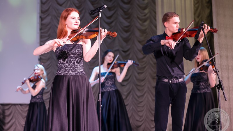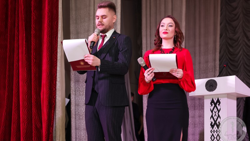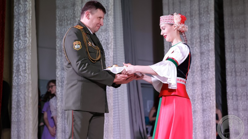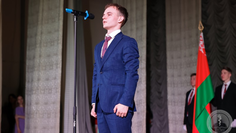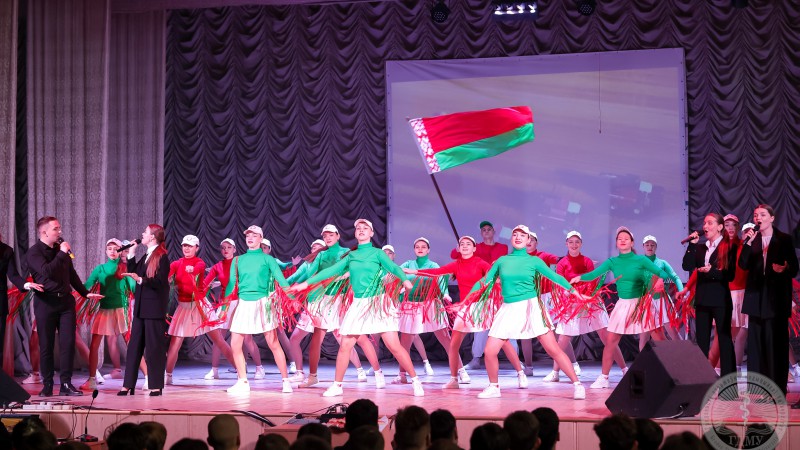 Череда поздравлений продолжилась праздничными концертными номерами в исполнении студентов Гродненского медуниверситета.