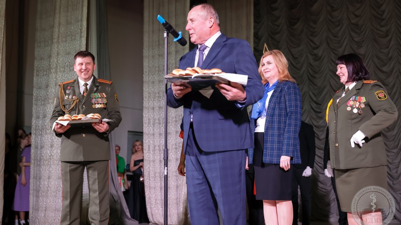 – Этому празднику более 100 лет, и за эти годы он стал по-настоящему всенародным. В этот день особые слова благодарности мы адресуем нашим ветеранам Великой Отечественной войны. К сожалению, с каждым годом их становится все меньше. Это те люди, которые преодолели тяжелые, трагические, но героические события. Именно благодаря им мы живем в свободной и мирной стране, где каждый из нас может расти и развиваться. Политика руководства страны, нашего Президента позволяет смело смотреть в будущее. Мы не претендуем на другие территории, а живем своей спокойной, мирной жизнью. И это самое ценное, что нужно хранить и беречь, – сказал Виталий Владимирович. – Военная медицинская подготовка – это важнейший элемент обороноспособности страны. Уважаемые студенты, вы занимаетесь на нашей прекрасной кафедре у опытных преподавателей, офицеров. Призываю вас серьезно относиться к тем вопросам и знаниям, которым вас обучают. Уважаемые коллеги, поздравляю вас с праздником! Желаю вам крепкого здоровья, профессиональных успехов, творческого роста и мирного созидания!