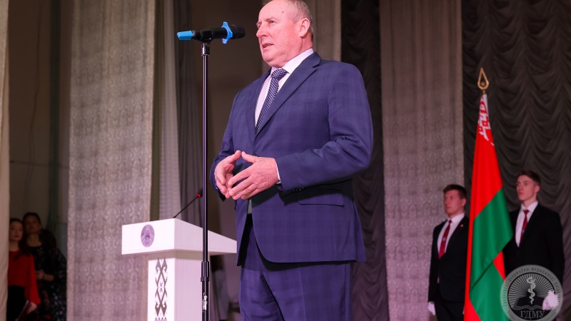 В Гродненском государственном медицинском университете прошло торжественное собрание, посвященное Дню защитников Отечества и Вооруженных Сил Республики Беларусь. С приветственным словом к присутствующим обратился проректор по международным связям и внебюджетной деятельности Виталий Владимирович Воробьёв.