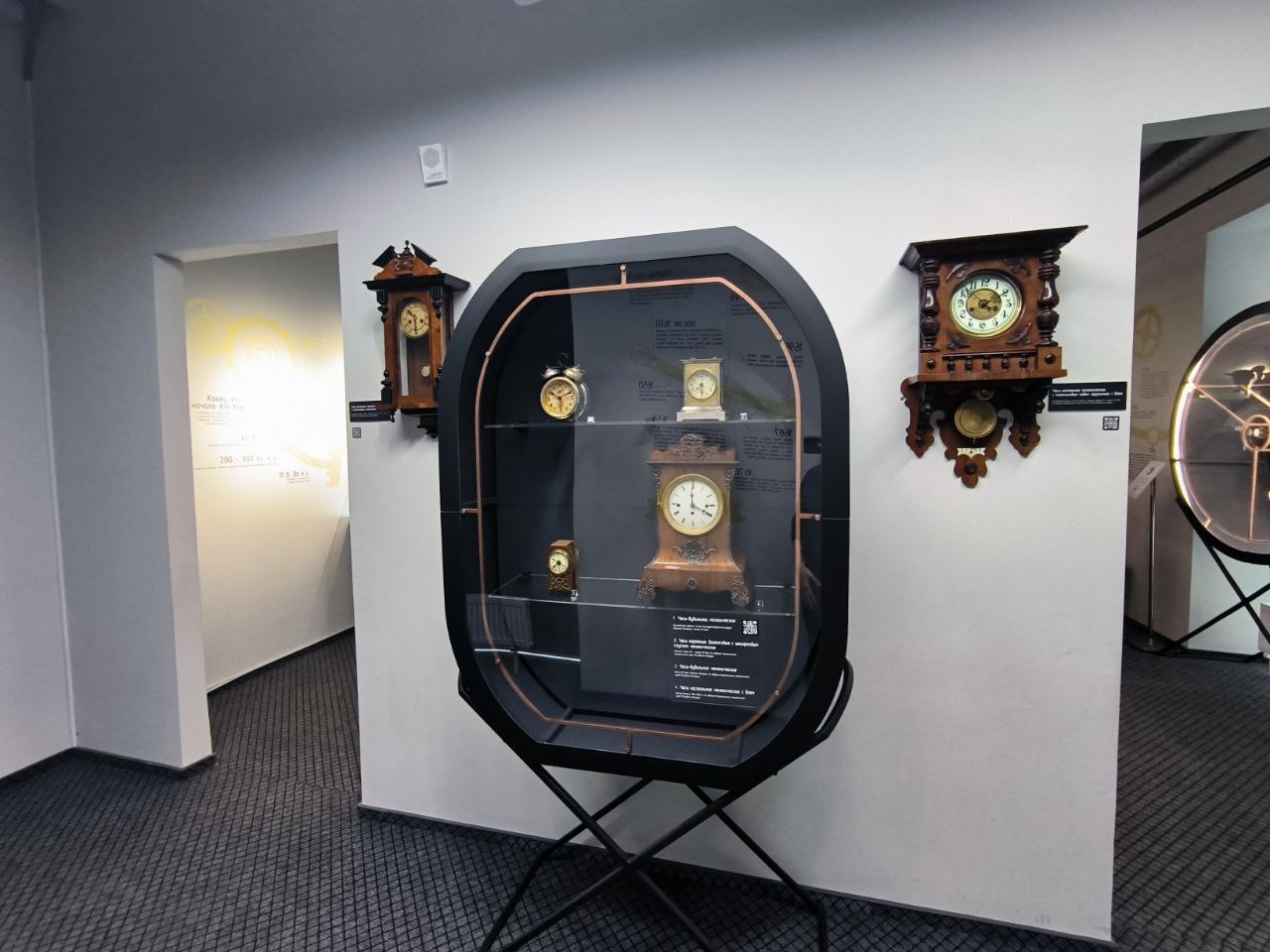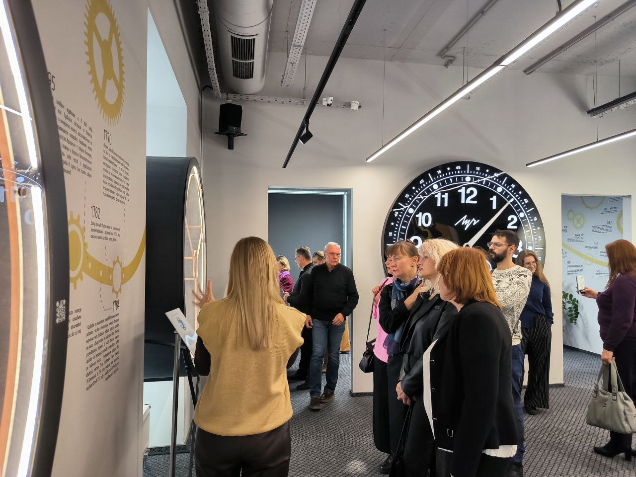 Программа началась с посещения Музея часового дела Беларуси, открывшегося в 2023 году. В ходе экскурсии сотрудники университета познакомились с ключевыми этапами развития хронометрии – от простейших устройств измерения времени до высокотехнологичных механизмов.