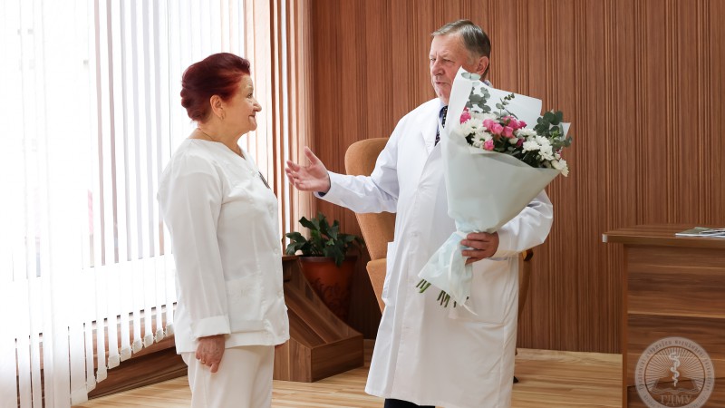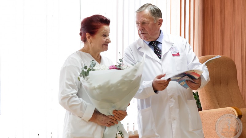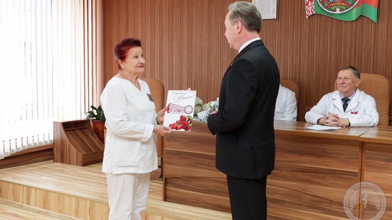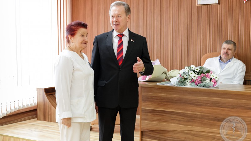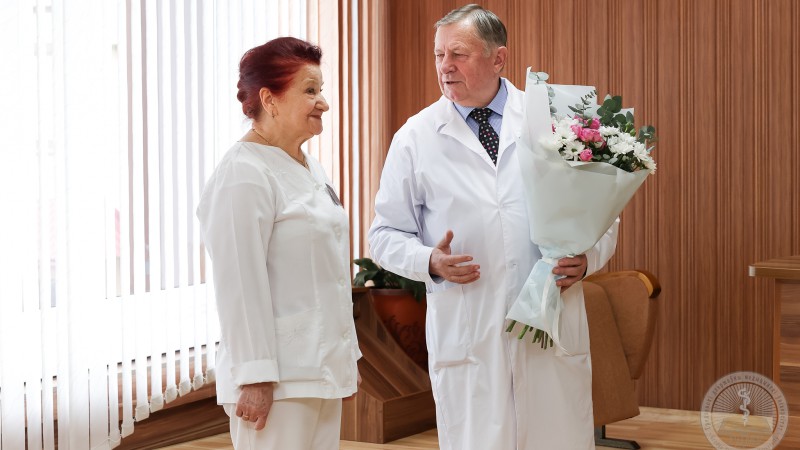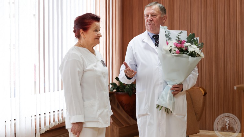 Ректор ГрГМУ Игорь Георгиевич Жук вместе с сотрудниками кафедры общей хирургии сердечно поздравили Ольгу Ильиничну Дубровщик с её 80-летним юбилеем!