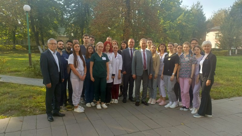 Ректор Гродненского государственного медицинского университета, член Совета Республики Национального собрания Игорь Георгиевич Жук посетил Лидскую ЦРБ, где трудятся 35 молодых медиков из всех медицинских вузов страны. На встрече также присутствовали главный врач Лидской ЦРБ Иван Владимирович Загоровский, председатель профсоюзного комитета Екатерина николаевна Жигало, начальник отдела клинической работы и последипломной подготовки ГрГМУ Алексей Вячеславович Дрокин.
