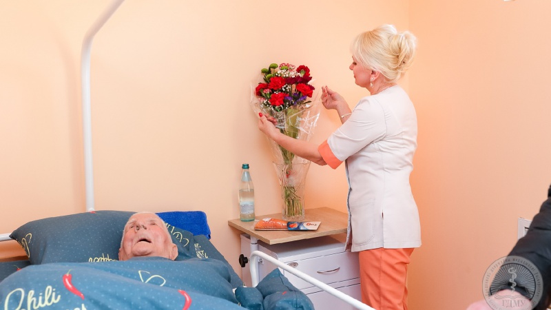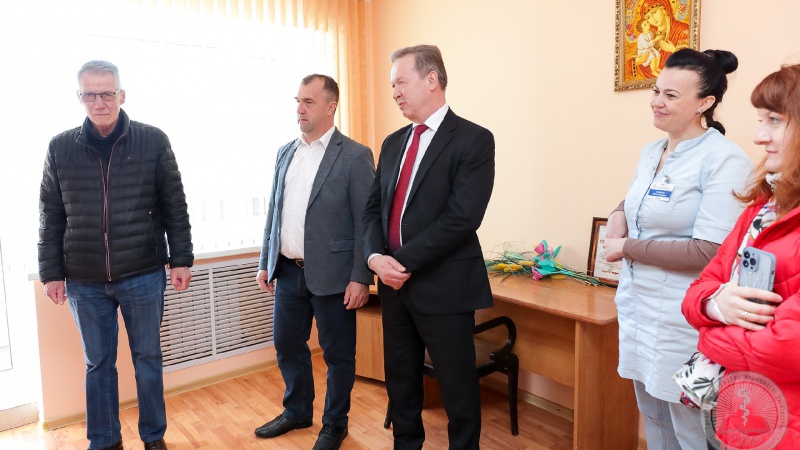 – С праздником вас, с Днем Победы! Мы помним вас, о ваших подвигах на дальневосточном фронте. Мы рассказываем молодому поколению о вашем славном боевом пути, в книге, изданной нашим университетом, в личных беседах. Спасибо вам за эту победу и за плодотворные годы работы в нашем вузе. От руководства университета, от всех сотрудников и студентов мы передаем вам сегодня и теплые слова поздравлений, и памятные подарки, и нашу благодарность за ваш незабвенный труд на благо нашей страны! – поздравил 99-летнего ветерана Владимира Андреевича ректор ГрГМУ Игорь Георгиевич Жук.